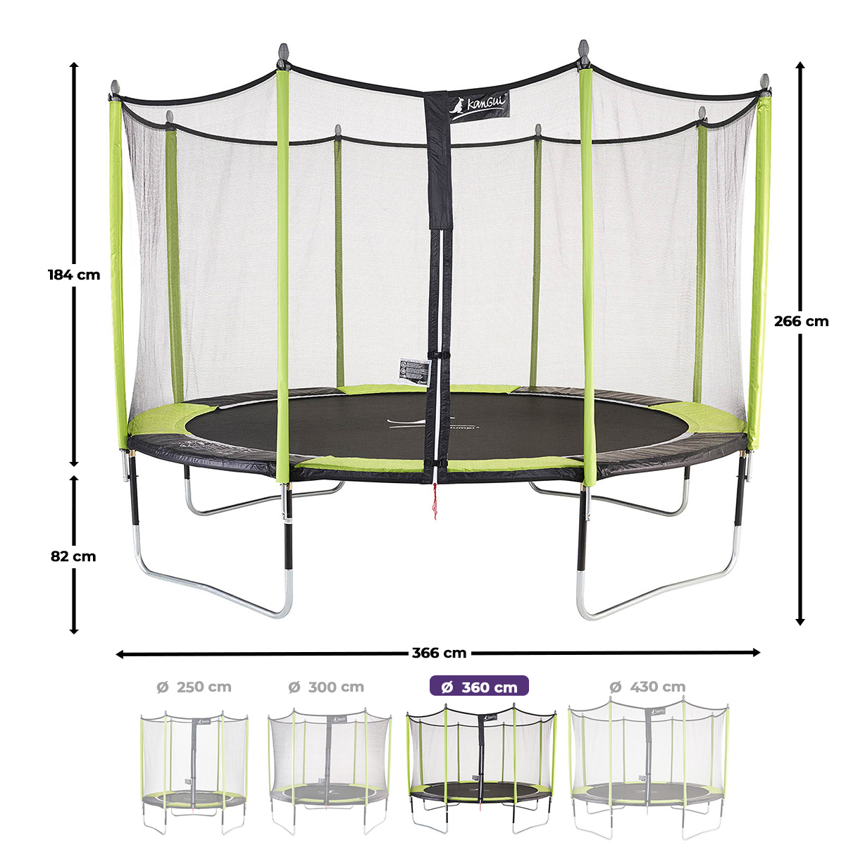 | Libellé | Kangui - Trampoline de jardin 365 cm + filet de sécurité + échelle JUMPI Vert/Noir 360 |