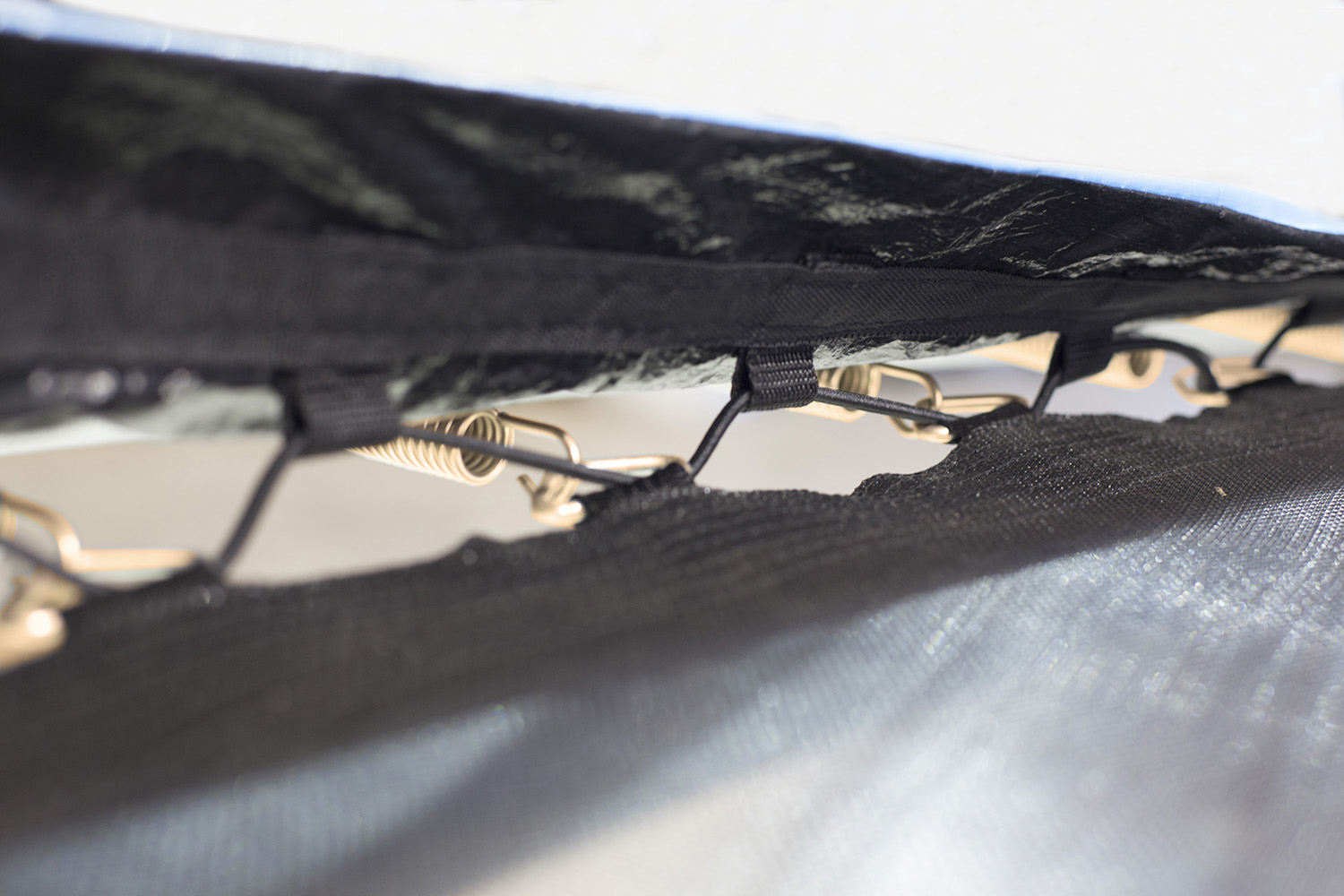 • Coussin de protection épais (22mm), résistant au temps et au U.V. avec une bavette intérieure de sécurité pour limiter l'accès aux ressorts