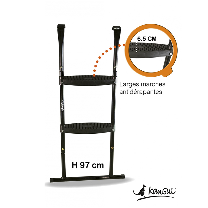 • Une échelle avec de larges marches PVC qui contrairement à l'acier ne rouillent pas