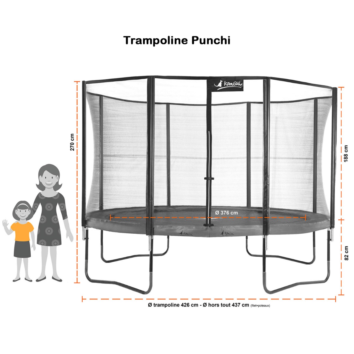 | Libellé | Kangui - Trampoline de jardin rond 430 cm + filet de sécurité | PUNCHI Bleu 430 |