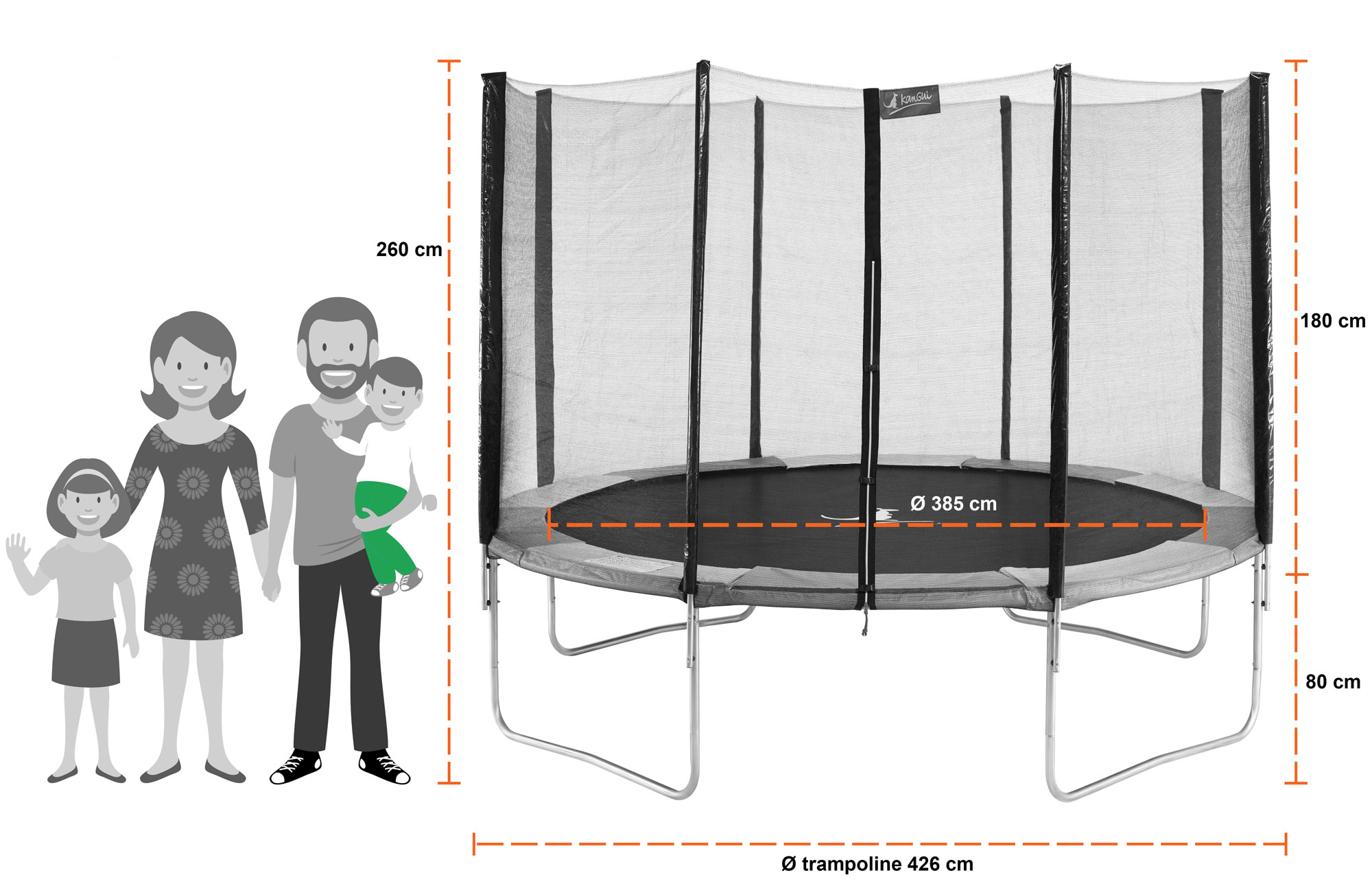 | Libellé | Kangui - Trampoline rond Ø430cm avec filet, échelle, bâche et kit d'ancrage - RALLI 430 |