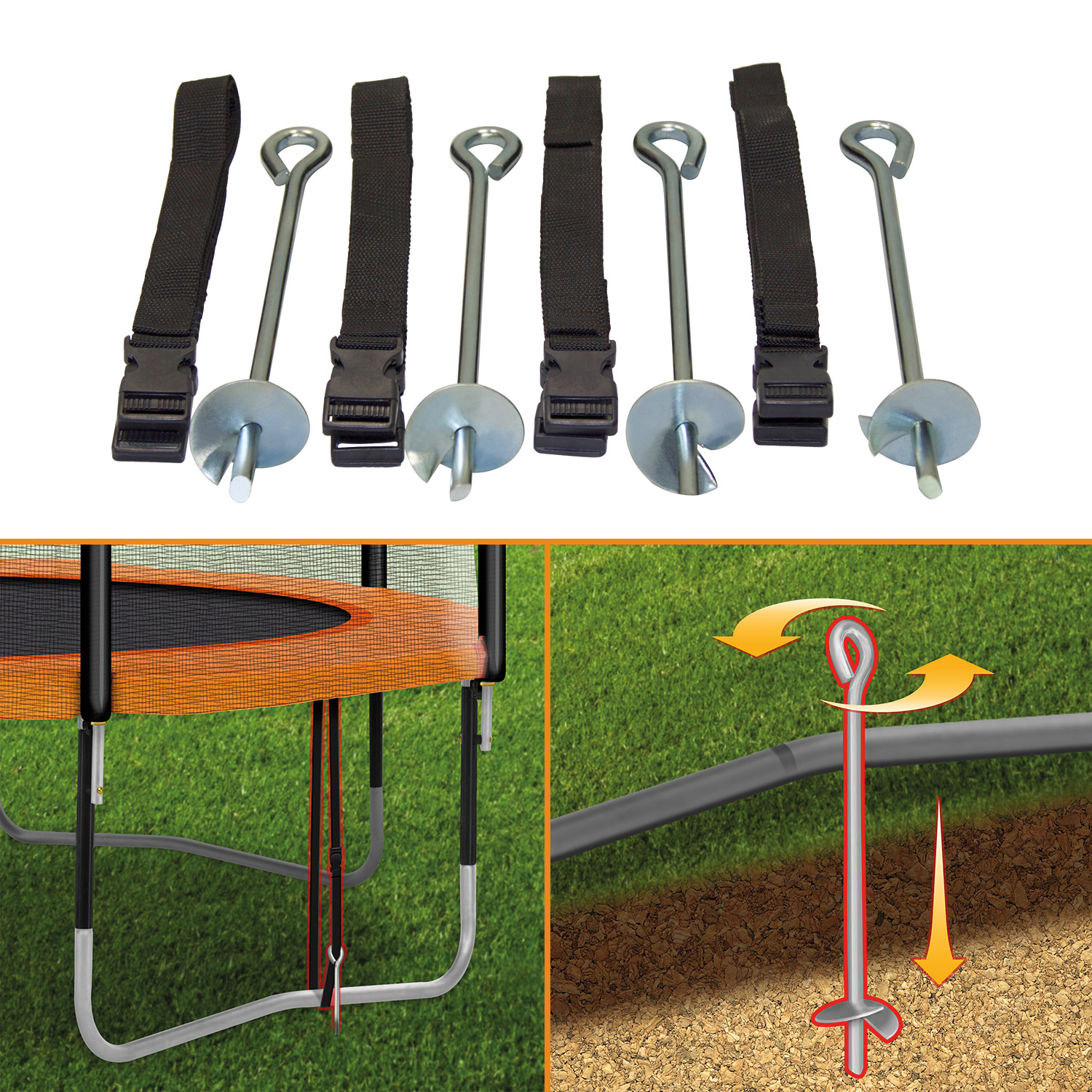 • Un kit d'ancrage pour stabiliser au mieux le trampoline.