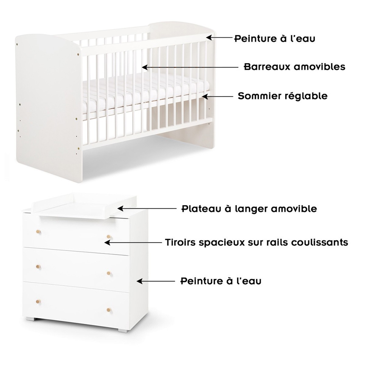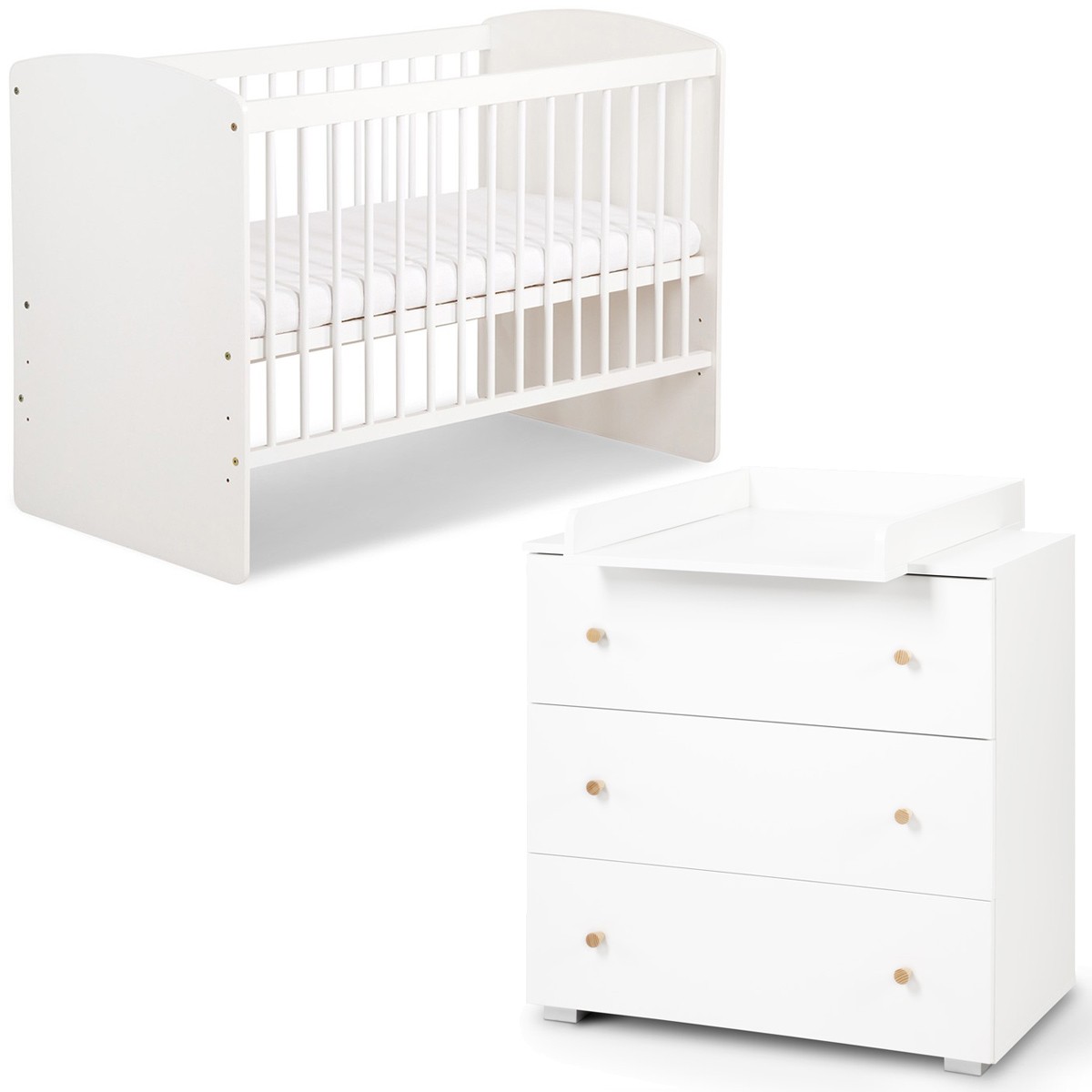 | Libellé | KAROLINA II Ensemble lit bébé 120x60 et commode à langer 3 tiroirs Blanc |