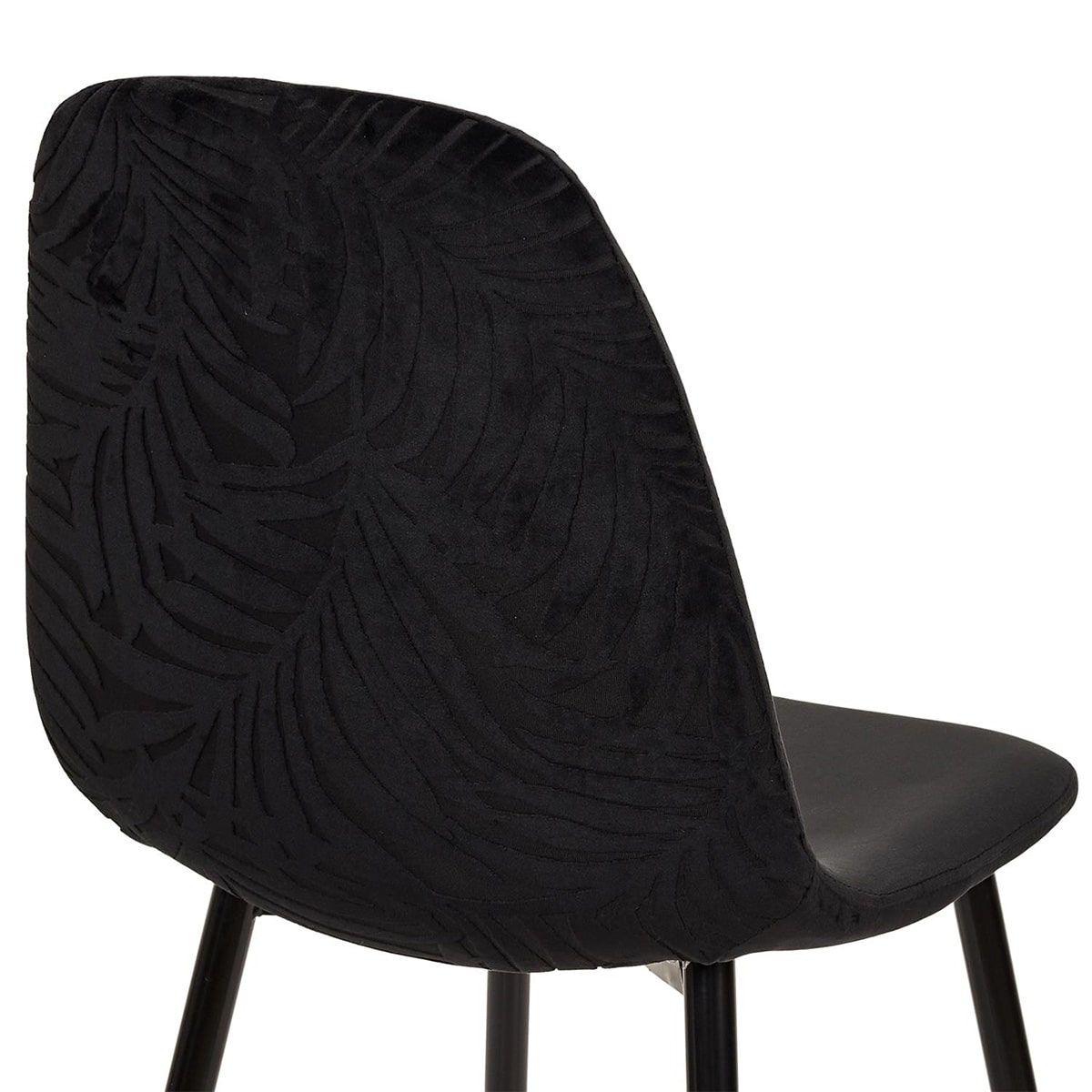 Lot de 4 Chaises Velours Noires Motif Feuilles de la gamme Kaza.