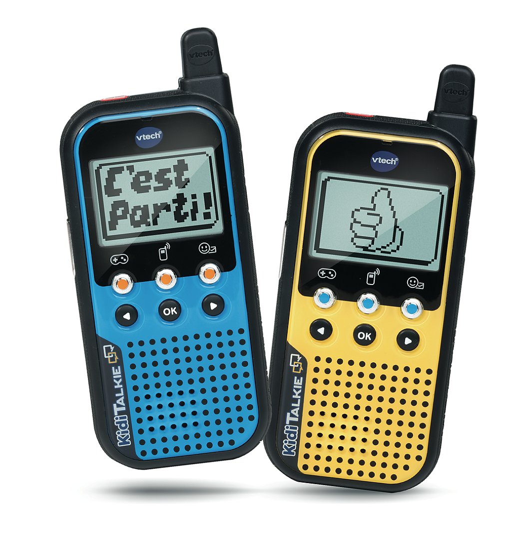 Kidi Talkie - 4 - 10 ans 6 fonctions: mode Talkie Walkie, connexion sécurisée, écran LCD rétroéclairé, message animés, transformation de la voix et jeux. Mode Talkie Walkie : Communication à distance (portée de 200m). Transformation de la voix pour encore plus de fun ! 4 effets amusants (aigu, grave, robot et écho). Mode message : permet d’envoyer des messages et des émoticônes sur l’écran. Mode jeu : 4 jeux pour jouer seul ou à plusieurs. Haute qualité audio. Très compact il est facile à prendre en main par les plus jeunes. Écran rétro éclairé. Deux coloris : jaune et bleu (1 Talkie pour chaque enfant). Boîte try-me. Fonctionne avec 6 piles LR03 fournies (3 par Talkie).