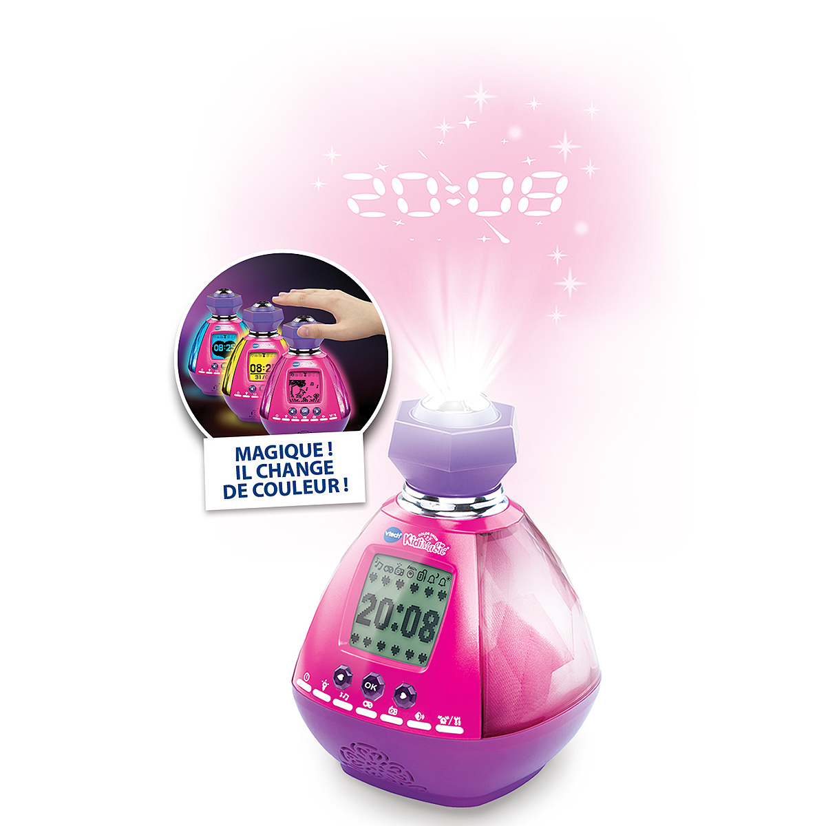 Un nouveau KidiMagic, en forme de flacon de parfum, qui projette l'heure et de jolies étoiles au plafond.