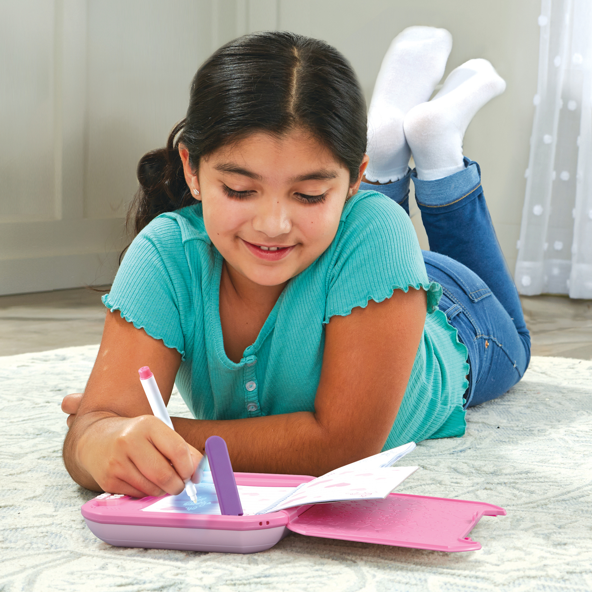 Kidisecrets Magic glow - 6 - 12 ans Un journal intime avec feutre à encre invisible pour cacher tous ses secrets ! Magique, le carnet A6 de 30 pages et le feutre à encre invisible inclus permettent d’écrire tous ses secrets et de les révéler avec la lampe UV ! Le compartiment derrière le carnet permet de cacher des objets ou des souvenirs. 5 jeux sont intégrés pour créer des mélodies, exercer sa mémoire, découvrir la pensée du jour et bien plus encore ! Un code secret à 4 chiffres permet de sécuriser le journal intime. Réglage du volume sonore. Boîte Try-me. Fonctionne avec 3 piles LR6 fournies.