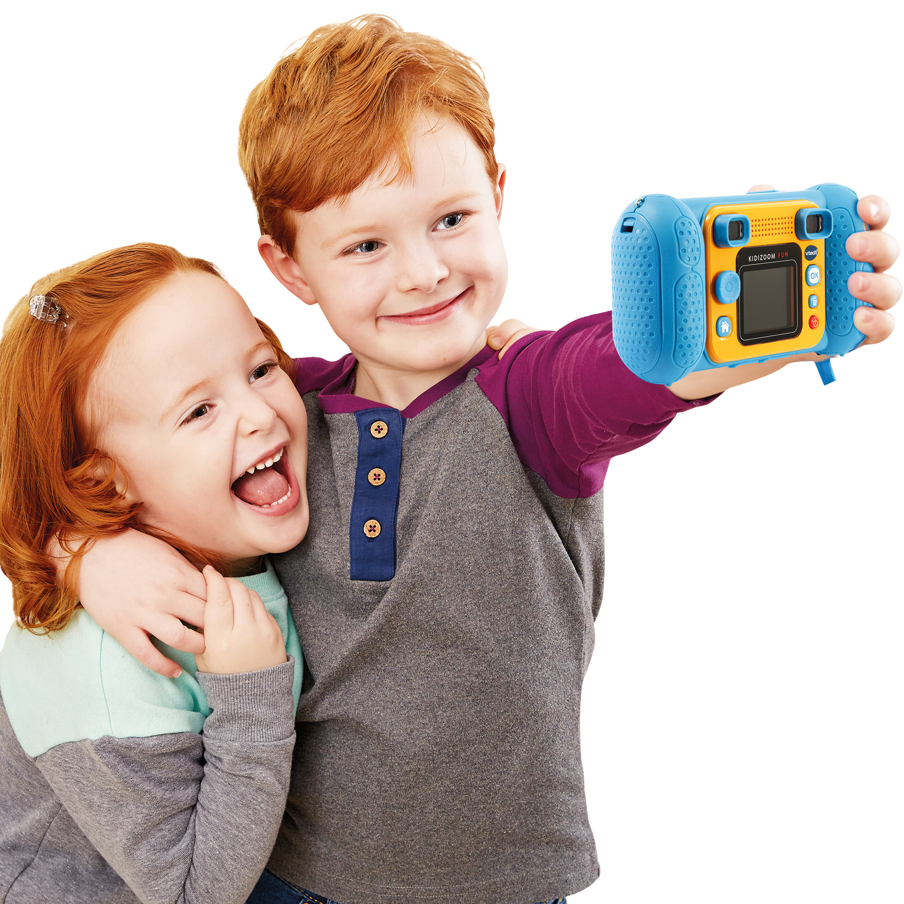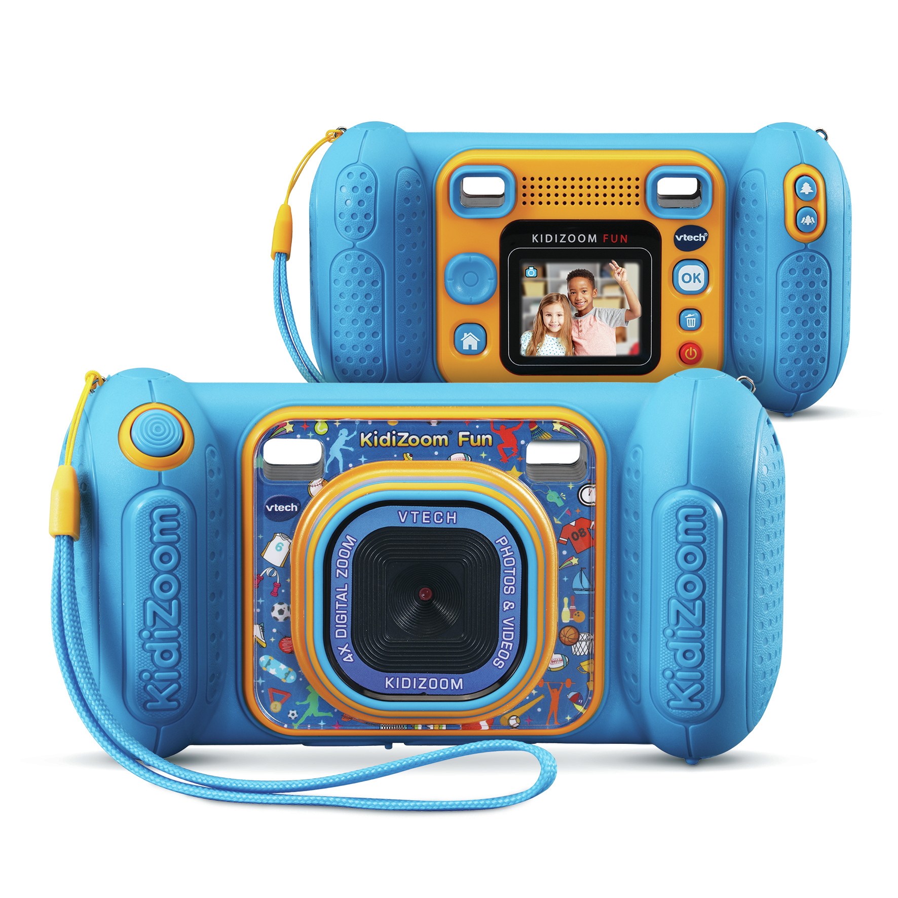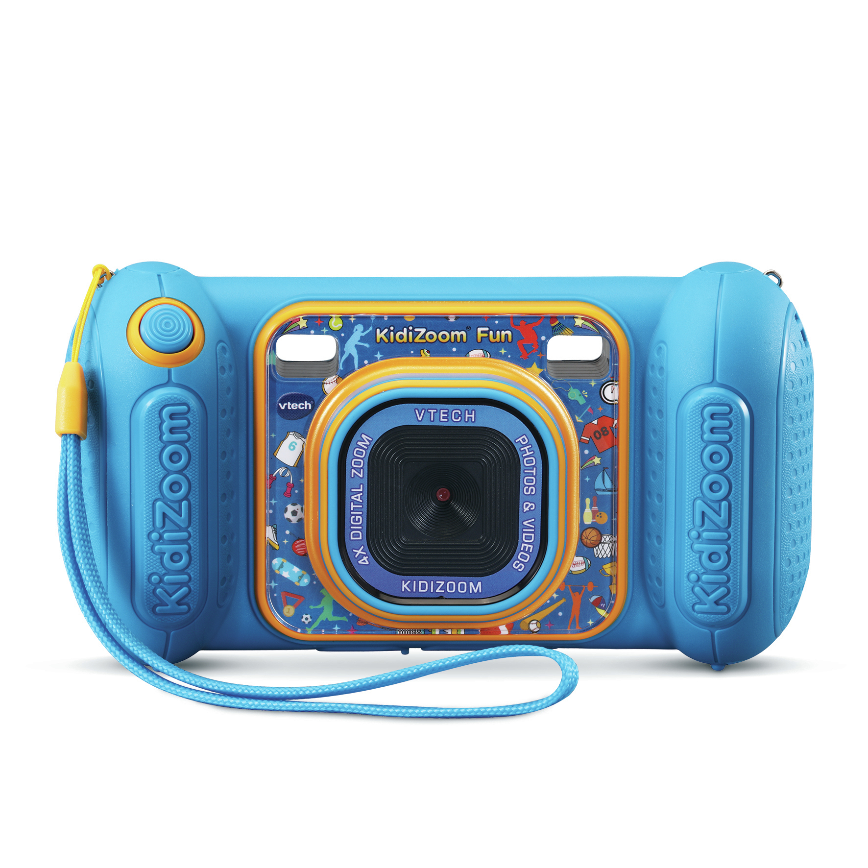 Kidizoom Fun bleu - 3 -10 ans Le nouvel appareil photo 9 en 1 des juniors avec écran couleur et zoom numérique x4 ! - Résolution de 2 MP - Plus de 40 trucages photo très rigolos : cadres, tampons, effets spéciaux… - Outils de créativité : transformation de la voix, photos panoramiques, animation image par image pour créer des animations stop motion. - 4 super jeux inclus pour travailler sa logique, son observation et sa coordination. - Détection de visage : L’appareil peut détecter un visage et prendre automatiquement une photo lorsqu’il le reconnaît ! Nouveau : un contrôle parental permet de limiter le temps de jeu quotidien ! - Mémoire interne de 256 Mo permettant d'enregistrer 740 photos ou 9 min de vidéo. - Emplacement pour carte microSD (non fournie) Très solide grâce au boîtier antichoc (avec protection caoutchouc) et simple d’utilisation : double viseur, gros bouton de déclencheur et dragonne de sécurité. Existe en deux coloris : bleu et rose. Arrêt automatique. Boîte fermée. Fonctionne avec 4 piles LR6 non fournies.