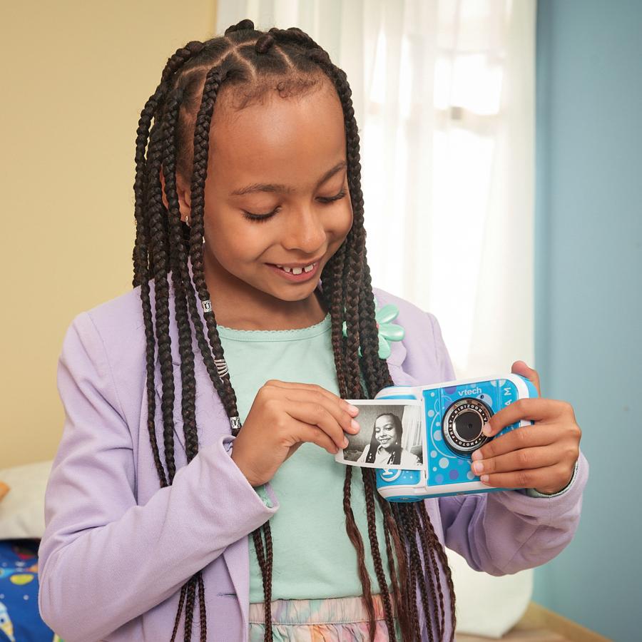KidiZoom Print Cam - 5 - 13 ans Appareil photo & vidéo HD avec mode selfie et détection des visages. Magique ! L'enfant imprime directement ses photos ! + de 40 effets spéciaux et 60 cadres et tampons pour personnaliser ses photos. Différents formats d’impression : photos classiques, panoramas, coloriages, cartes, étiquettes, BD. 1 rouleau de papier pour impression inclus permettant de réaliser jusqu’à 80 tirages. Contrôle parentaux pour limiter le nombre d’impression par jour. Impression thermique. 3 jeux et des activités créatives. Résolution 5.0 M pixels Mémoire : 256 MB - Extension de la mémoire avec carte micro SD (non fournie) Dragonne et câble USB fournis. Existe en deux coloris : rouge et bleu. Arrêt automatique. Boîte fermée. Batterie rechargeable.