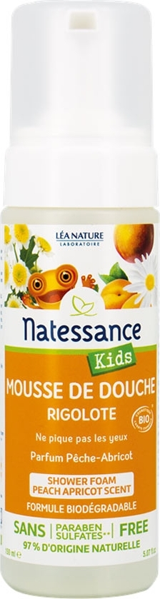 Natessance Kids Mousse de Douche Rigolote 150 ml est une mousse de douche qui permet de se laver de manière ludique tout en prenant soin de la peau de votre enfant. Cette mousse respecte l'équilibre de la peau grâce à sa base lavante d'origine végétale, sans savon. Sa texture mousse légère laisse sur la peau un parfum fruité de pêche et d'abricot. 97% du total des ingrédients est d'origine naturelle. 19% du total des ingrédients sont issus de l'Agriculture Biologique. Cosmétique Écologique et Biologique certifiée par Ecocert Greenlife.