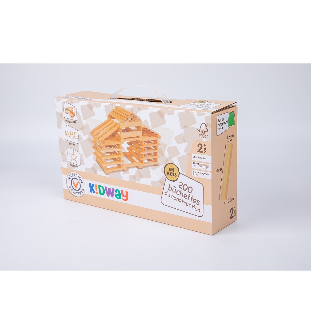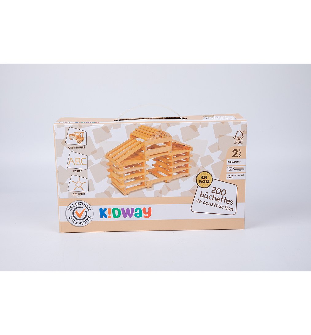 | Libellé | KIDWAY - 200 bûchettes de construction en bois - Construction - 2 ans et + |