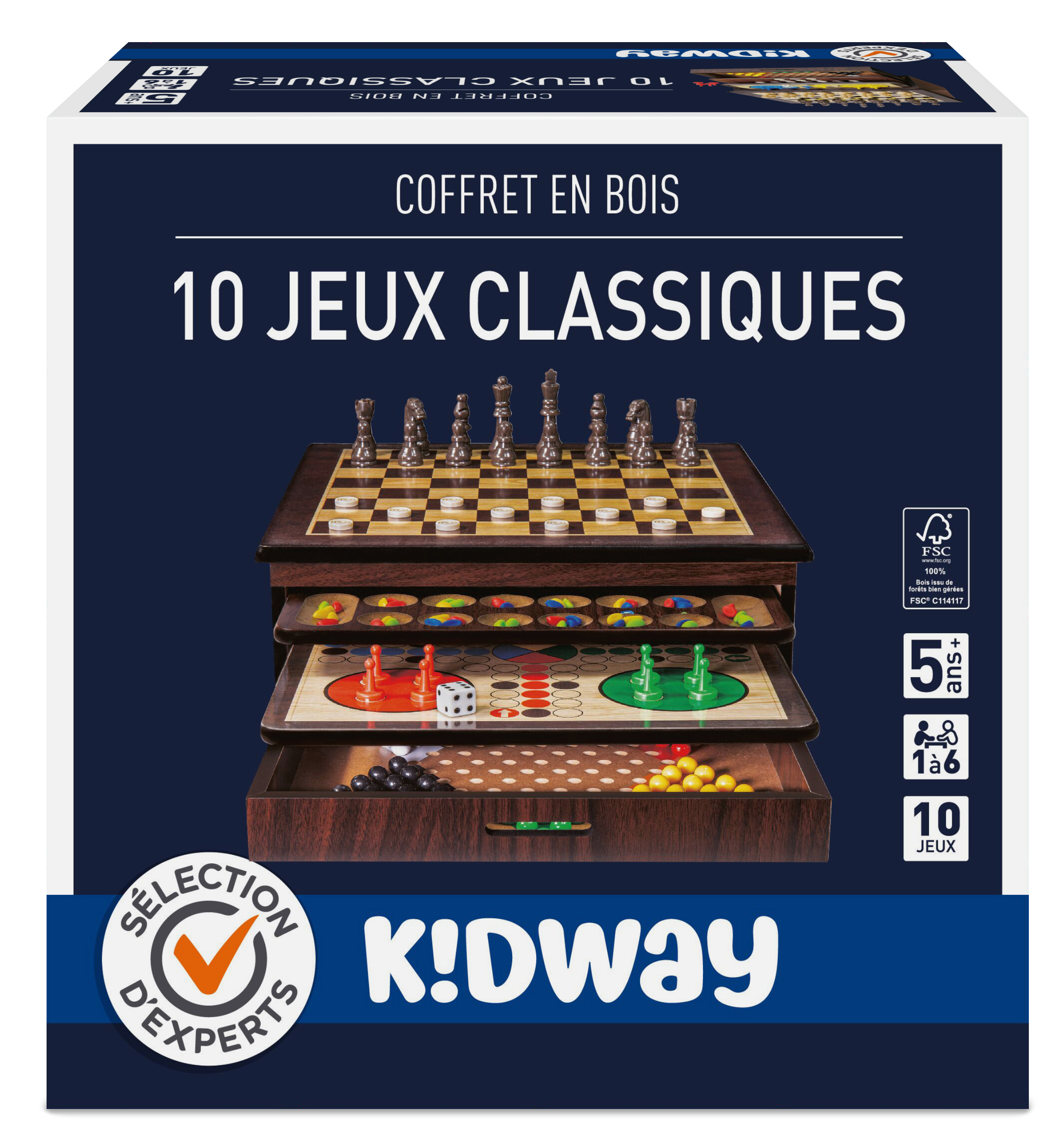 | Libellé | KIDWAY - Coffret 10 jeux classiques en bois - Jeux de société - 5 ans et + |