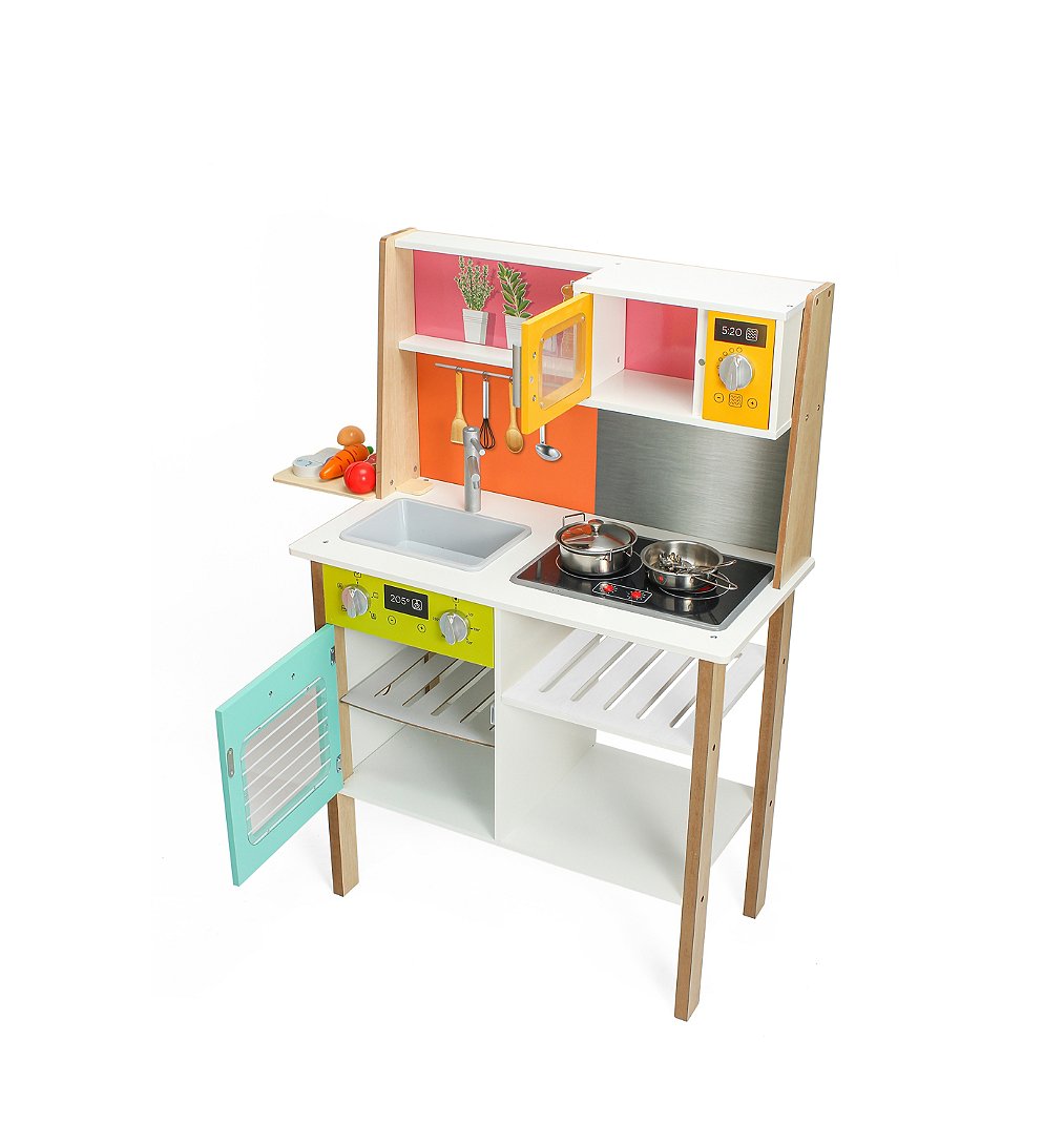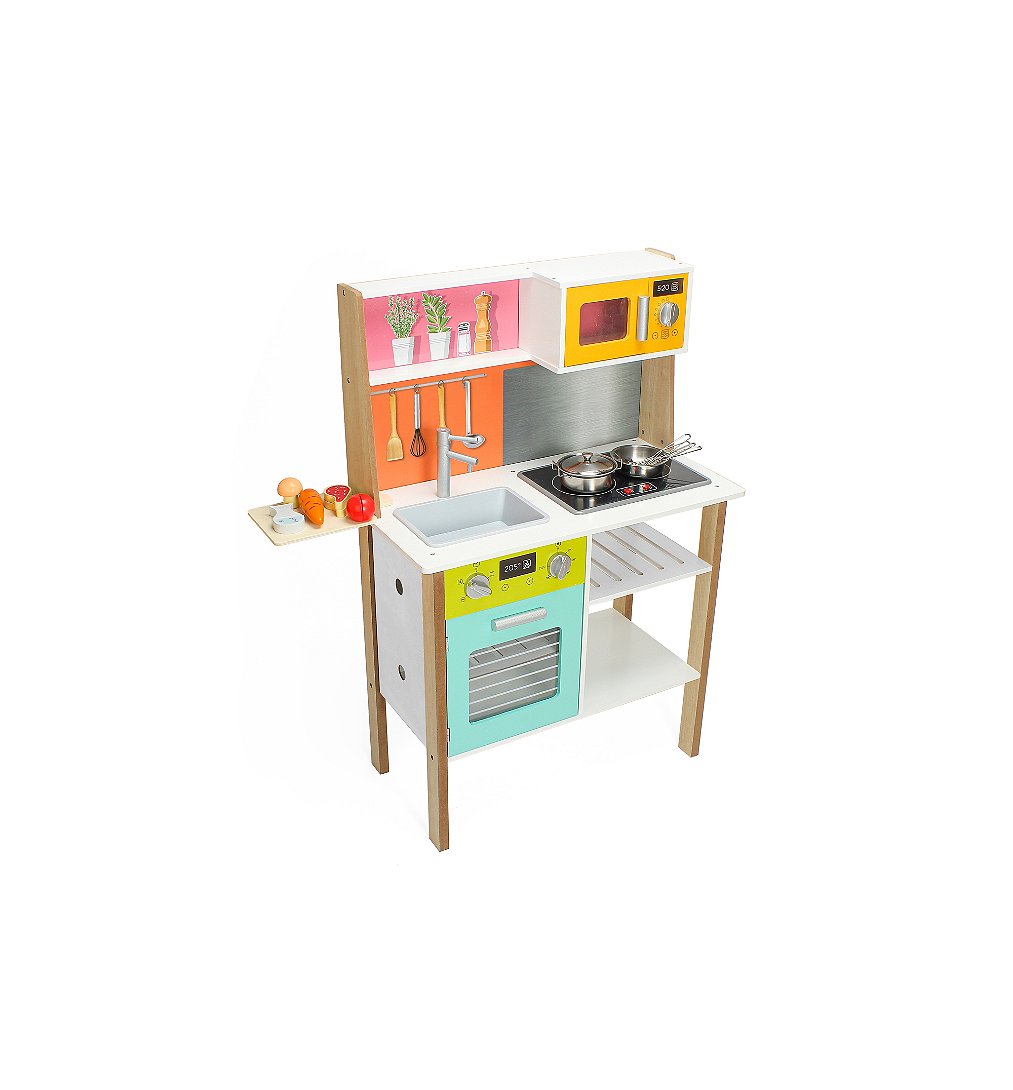Découvrez cette cuisine en bois, spécialement conçue pour les jeunes cuisiniers en herbe. Multifonctionnelle, elle est parfaitement équipée donner vie aux meilleures recettes et repas.