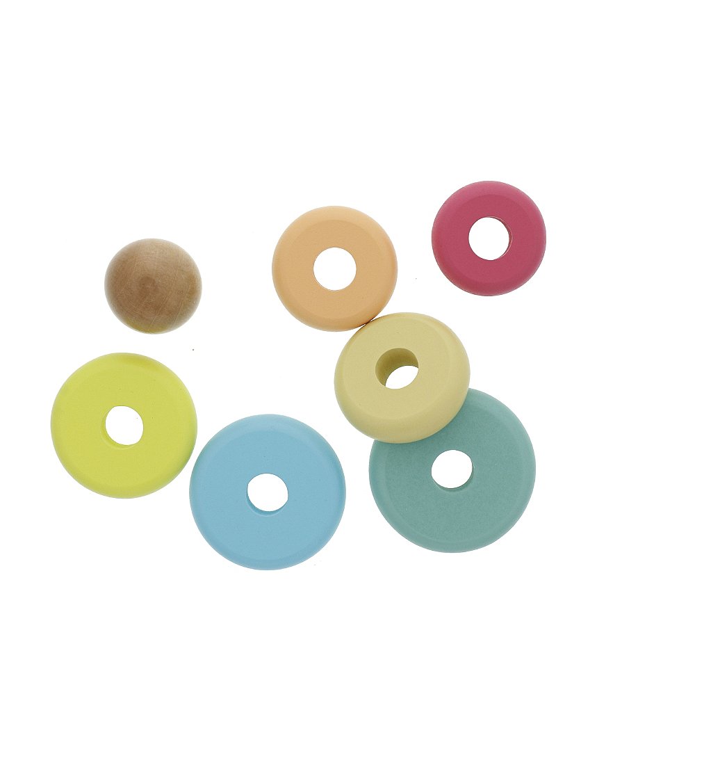 | La boîte contient | 1 structure, 6 anneaux de plusieurs tailles à empiler et 1 boule en bois FSC®. |