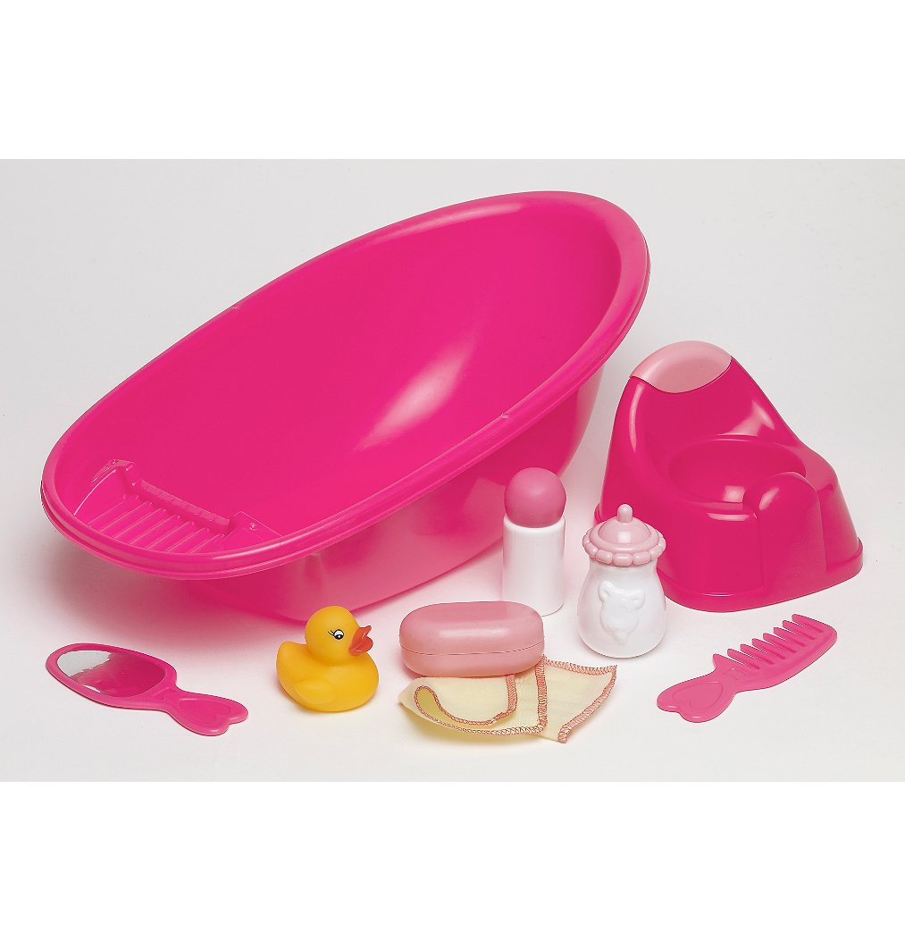 | La boîte contient | 1 baignoire et 8 accessoires (pot, serviette, peigne, miroir, biberon, flacon, savon, canard). |