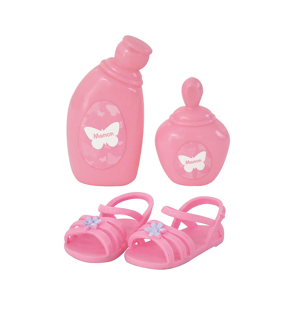 • Manon est accompagnée de son fidèle ourson en peluche et possède même ses propres flacons pour ajouter une touche de réalisme à son jeu.