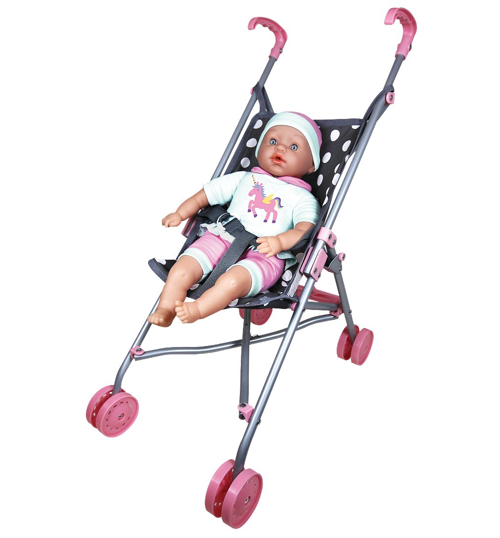 • La poussette canne est pliable, ce qui la rend pratique à ranger et à transporter, et dispose même d’une ceinture pour bien maintenir le poupon en place.