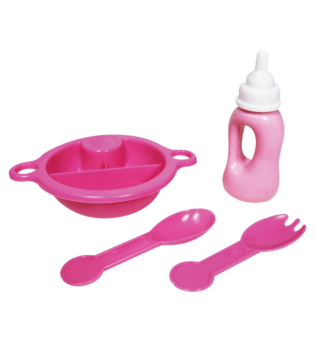 • Le set repas comprend une panoplie complète de 4 accessoires pour recréer le rituel du repas : un biberon, une assiette et des couverts.