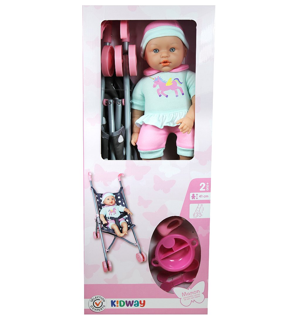 | Libellé | KIDWAY - Manon poussette canne et son set repas - Poupée - 2 ans et + |