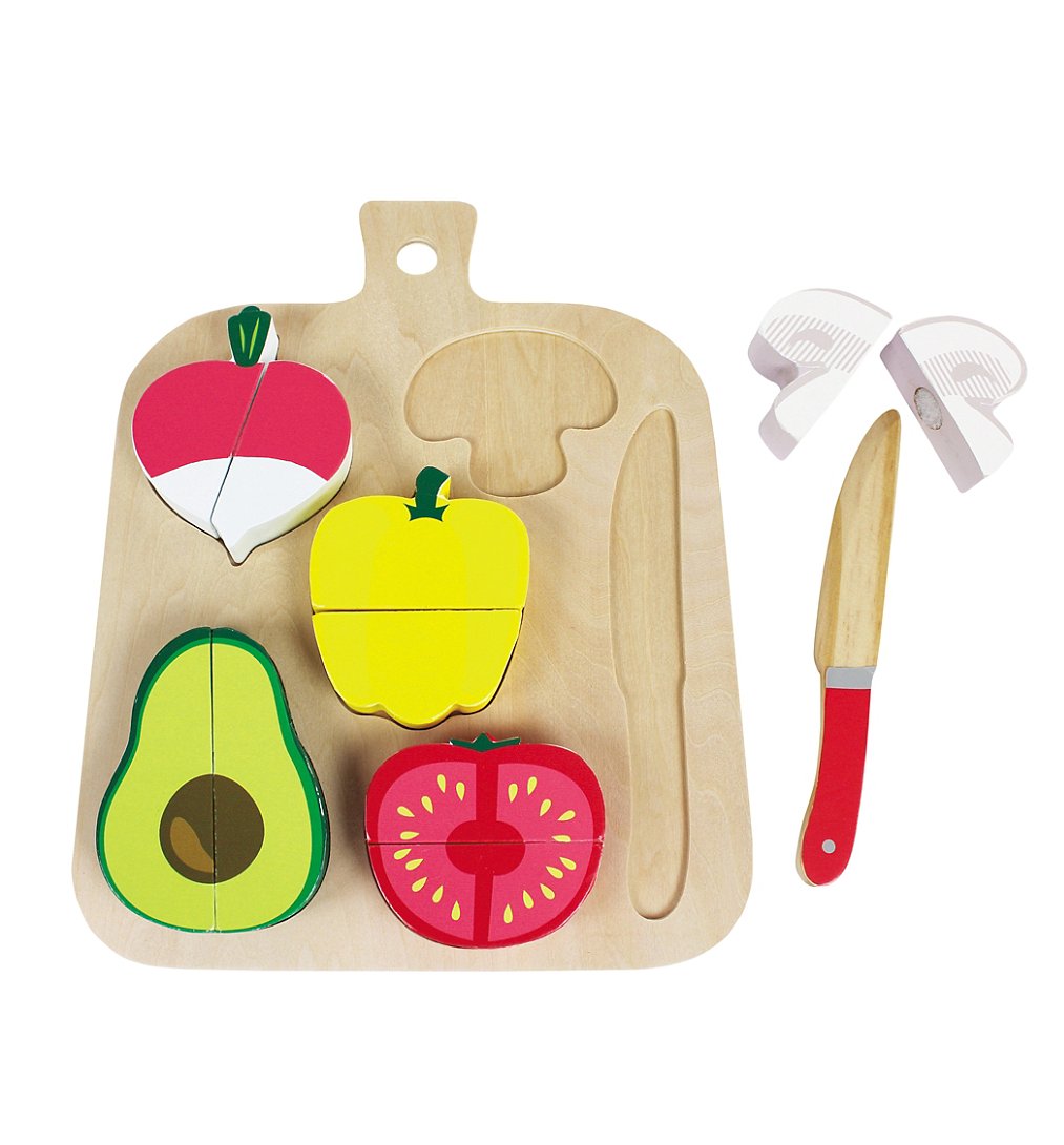 Très bonne approche pour les enfants pour apprendre à découper tout en s'amusant et leur redonner goût aux fruits et légumes.. joli design et le bois est un bon matériaux