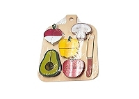 | La boîte contient | 1 planche à découper avec 5 fruits ou légumes et 1 couteau, en bois FSC®. |