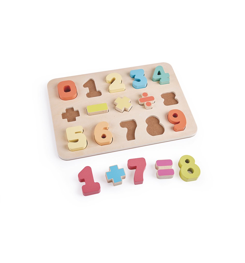 | La boîte contient | 1 structure et 15 pièces chiffres et signes colorées en bois FSC®. |