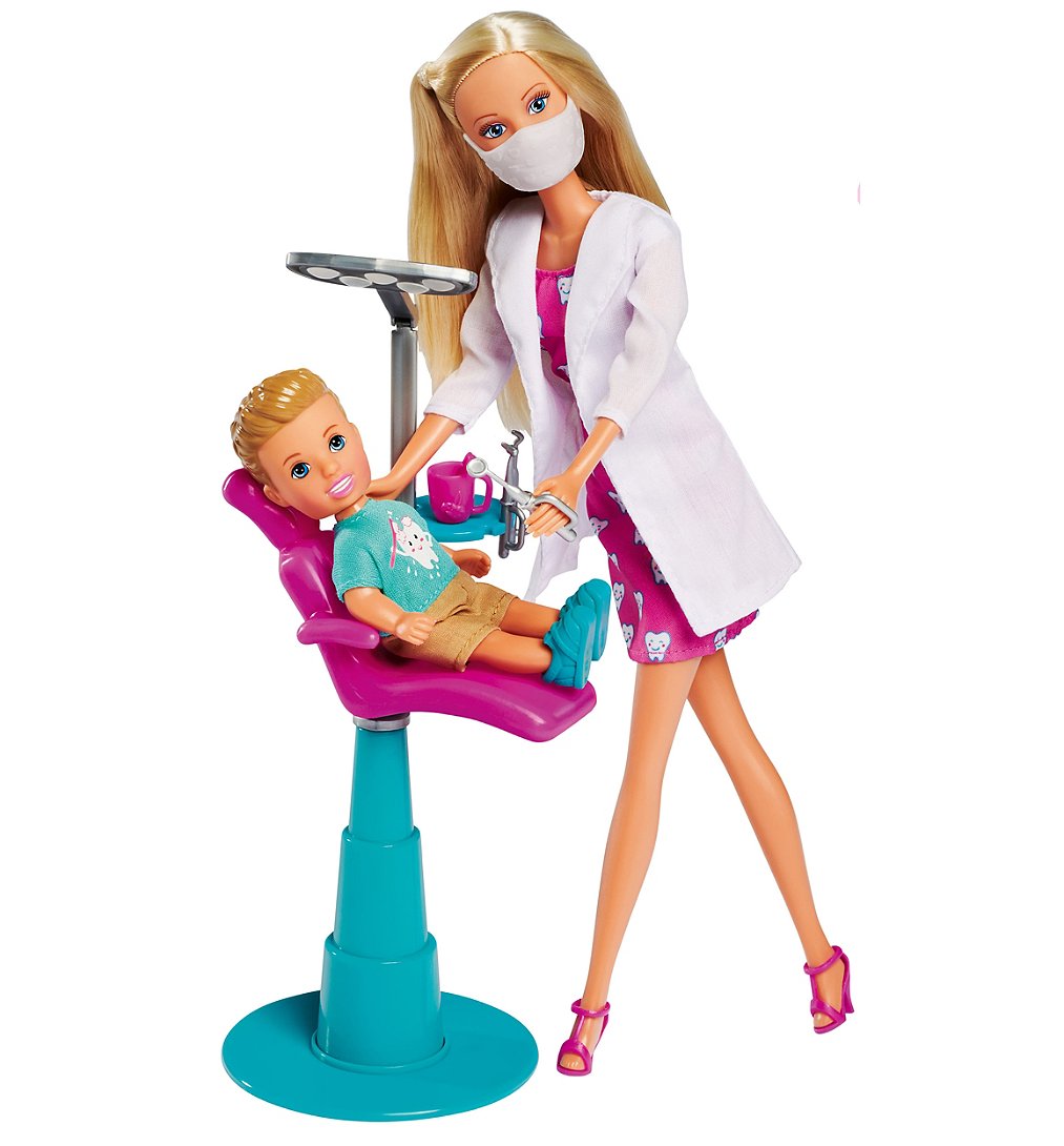 | La boîte contient | 1 poupée mannequin de 29cm habillée en médecin, 1 garçon de 13cm, 1 chaise de dentiste et de nombreux accessoires. |