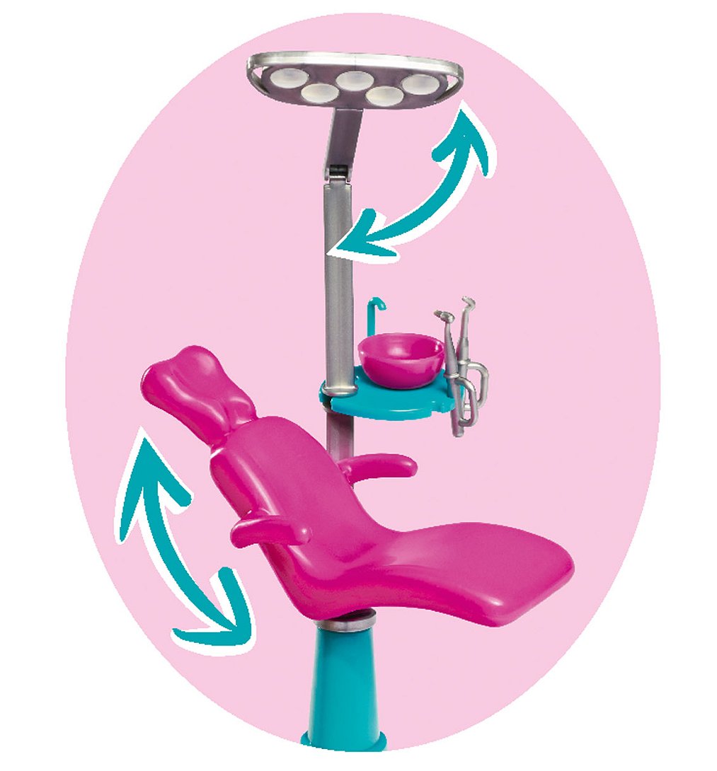 • Morgan, avec sa blouse, est prête à prendre soin de son petit patient. Votre enfant pourra jouer le rôle d’un dentiste, administrer des soins imaginaires, et inventer d'innombrables histoires.
