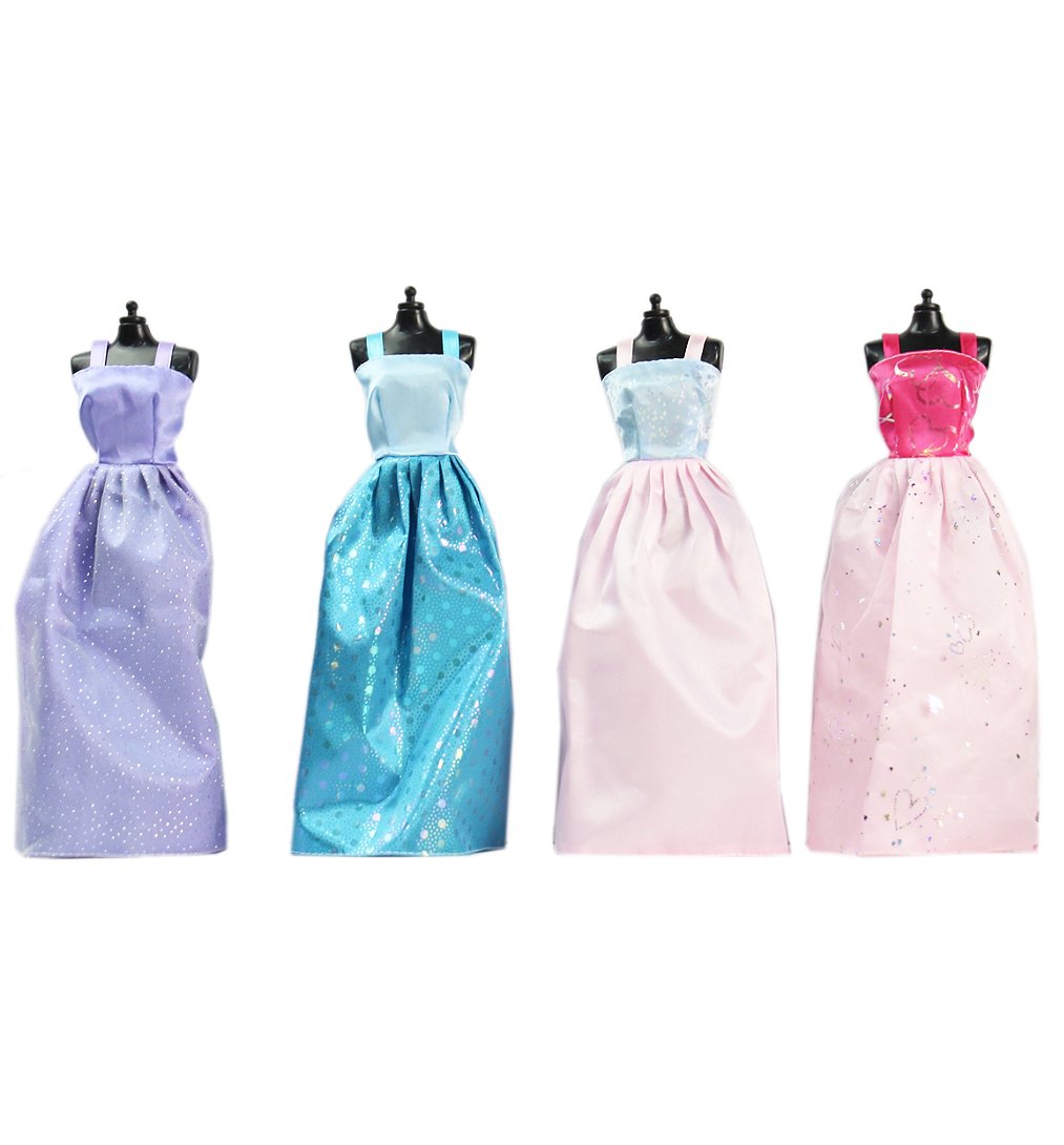 • Ce set de 8 belles robes pour poupée mannequin de 29 cm est parfait pour habiller vos poupées en toute occasion. il contient 4 robes longues et 4 robes courtes, chacune ornée de jolis motifs, de strass ou encore de paillettes.