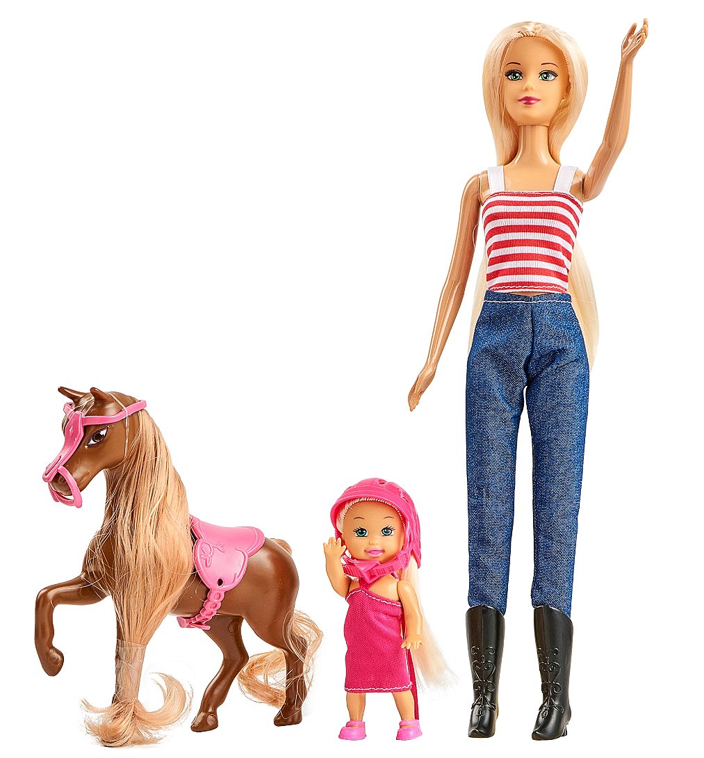 | La boîte contient | 1 poupée de 29cm en tenue de cavalière, 1 petite poupée enfant et 1 poney. |