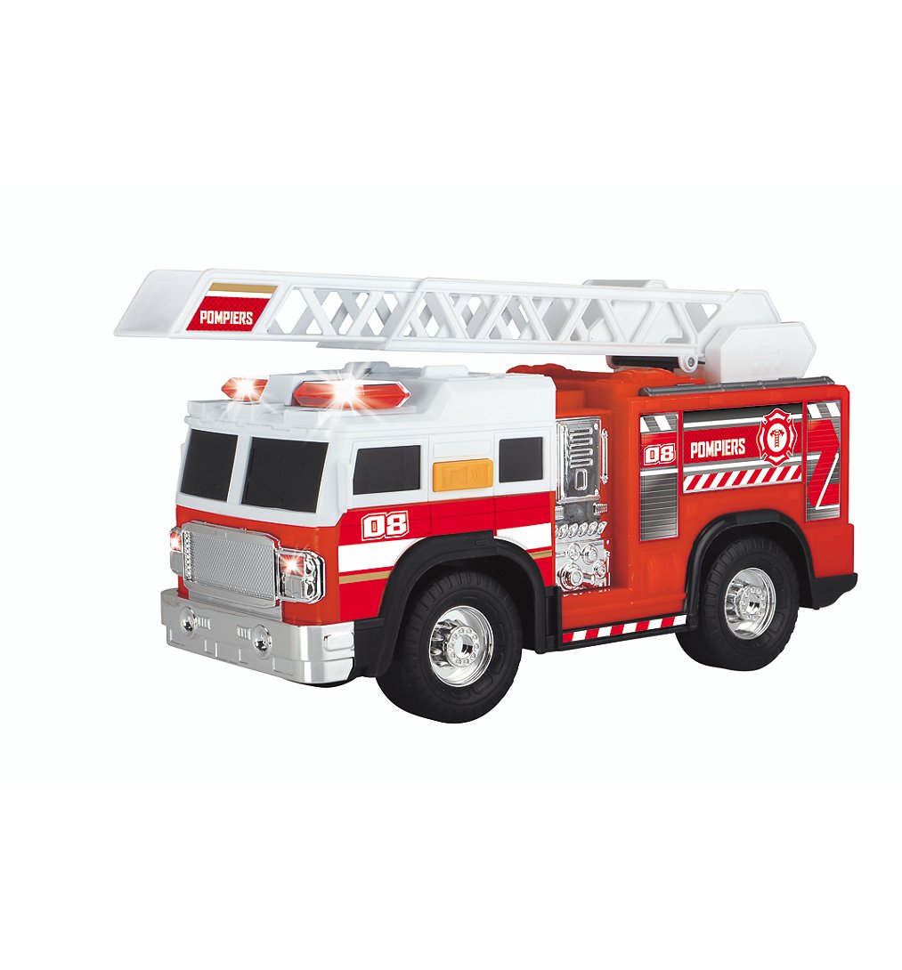 | La boîte contient | 1 camion de pompier son et lumière avec roues libres et échelle déployable. |