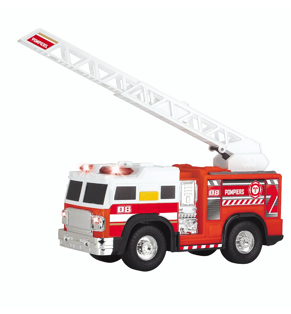 Ce camion de pompier avec sons et lumières est parfait pour les jeunes passionnés d'aventures. En appuyant sur un bouton, les sirènes retentissent et les gyrophares s’illuminent. Le véhicule est accompagné d'une échelle télescopique pour permettre aux enfants de recréer des scènes d'intervention.