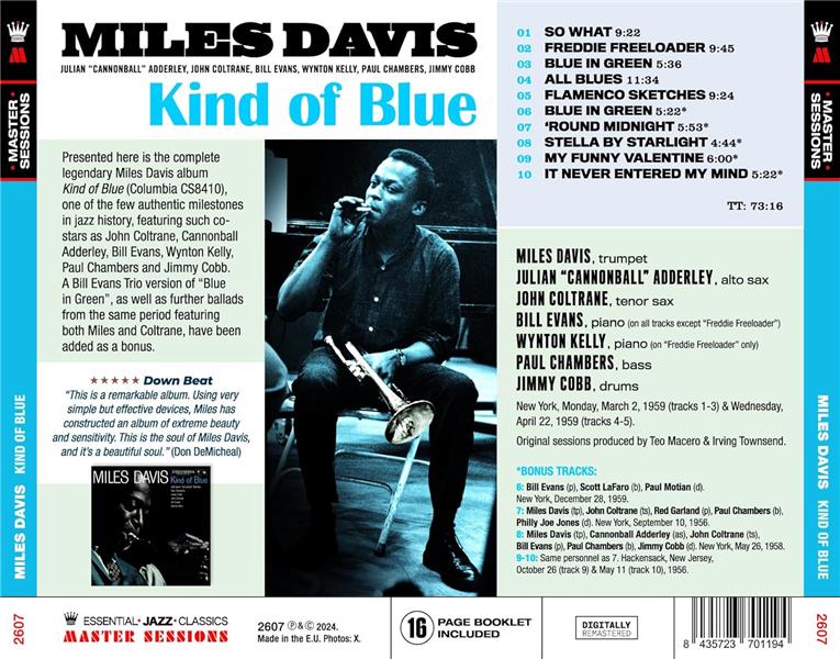 Présenté ici est l'intégralité du légendaire album de Miles Davis, \"Kind of Blue\", l'un des rares jalons authentiques de l'histoire du jazz, mettant en vedette le leader à la trompette avec des co-stars telles que John Coltrane au saxophone ténor, Cannonball Adderley au saxophone alto, Bill Evans au piano, Wynton Kelly au piano, Paul Chambers à la basse, et Jimmy Cobb à la batterie.