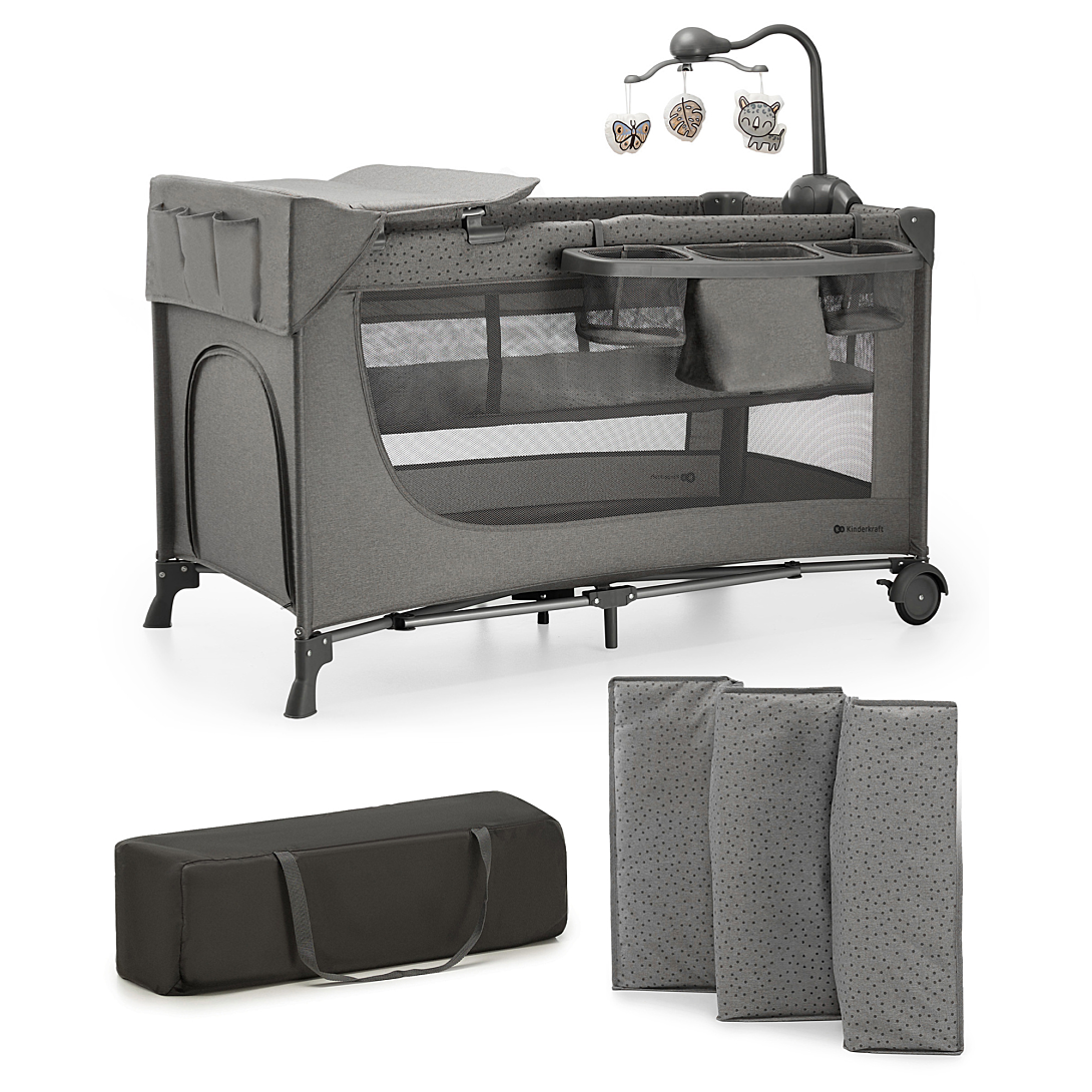 Kinderkraft Lit parapluie 3en1 JOY 2 avec accessoires (gris foncé)
