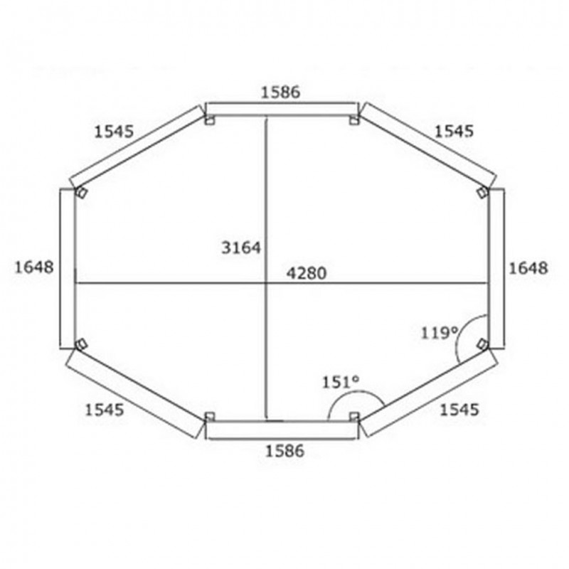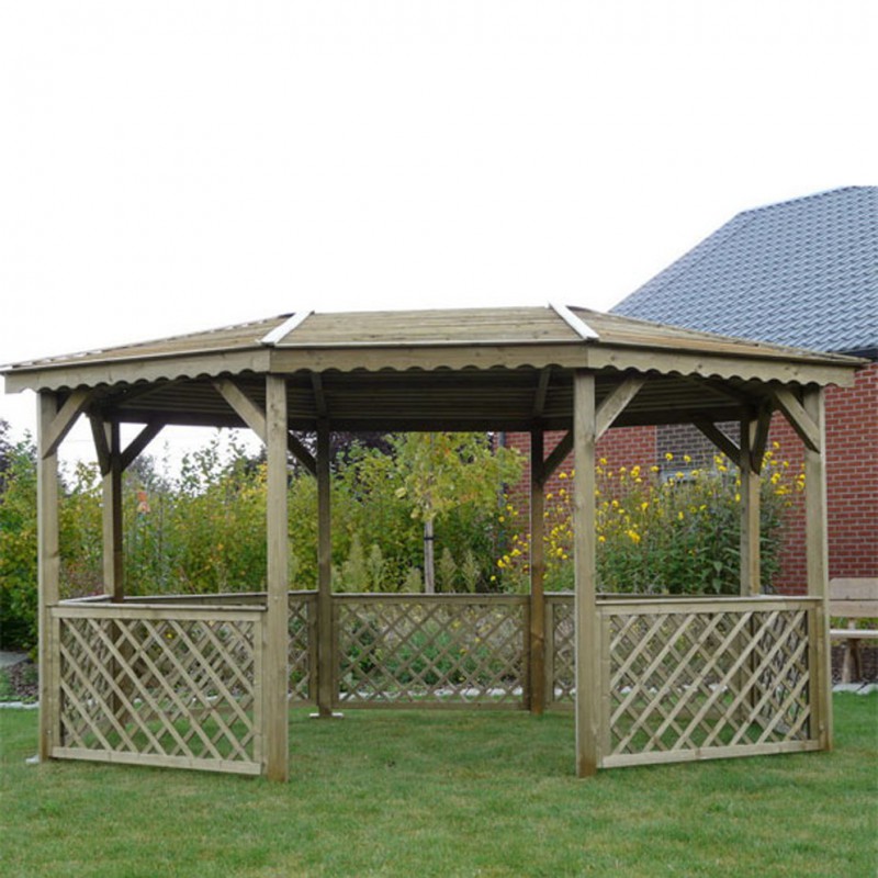 Descriptif:Kiosque - 4.45 x 3.40 m - Epicéa - Traité autoclave vert - Normes FSC - Kit à monter - Livré avec vis - fabrication Européenne.Matière:Bois - Pin.Structure:Bois - Pin.Panneaux:Non.Dimensions intérieures:Dimensions des poteaux 90 x 90 mm - Dimensions pans d'extrémités : 1.648 m - Dimensions autres pans : 1.454 / 1.586 m.Dimensions extérieures:4.28 x 3.16 m.Toiture:Voliges 16 mm.Type de couverture:Voliges 16 mm.Pente de toit:25 °.Recouvrable tuiles / ardoises:non.Dimensions:4,45 x 3,40 x 2,8 m.Poids:343,5.Colisage:1 colis : - 0,445 x 0,34 x 2,76 m, 343,5 kg.