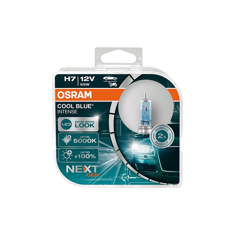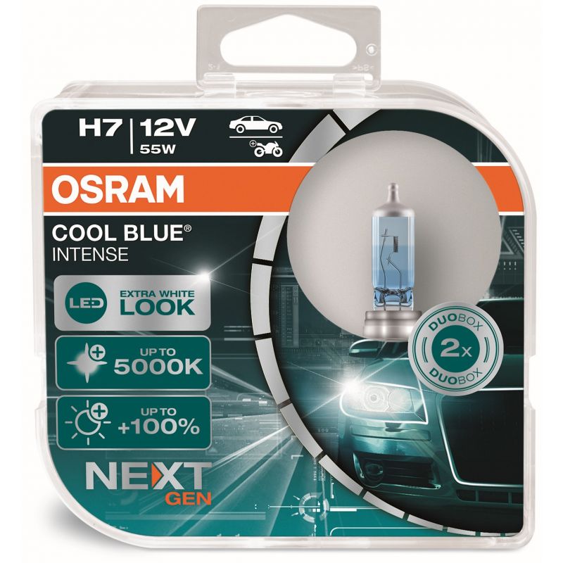 OSRAM COOL BLUE INTENSE H7, +100% plus lumineux, jusqu'à 5000K, lampe halogène, look LED, duo box (2 lampes)