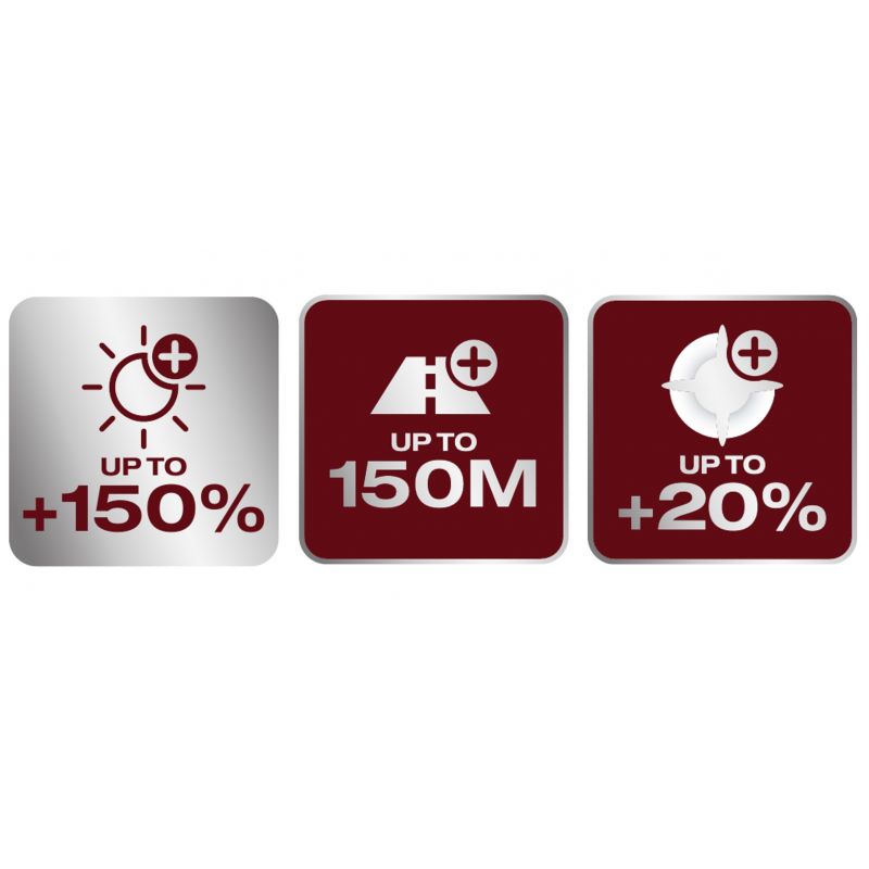 Jusqu'à 220 % de luminosité supplémentaire, pour une sécurité accrue au volant grâce à un meilleur éclairage de la route.
