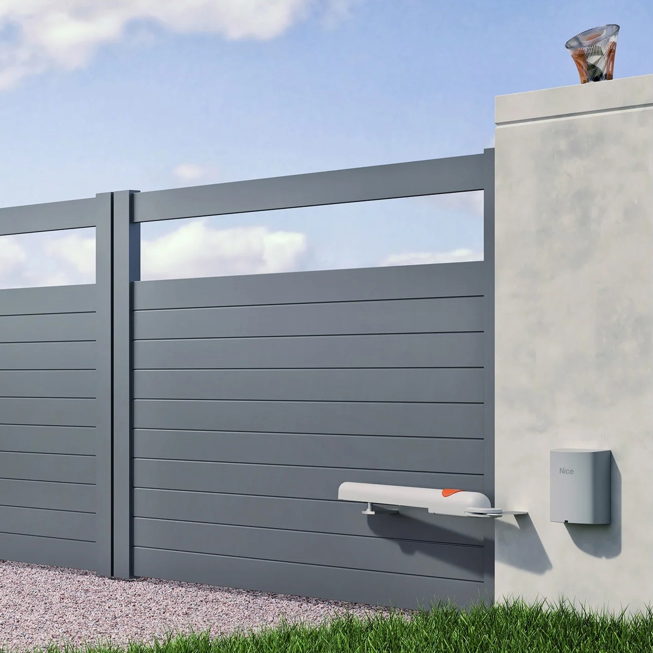 | Plus produit | Destiné aux portes lourdes soumises à des charges de vent élevées. La porte ne doit pas dépasser 250 kg et 2,20 mètres. Ouverture du portail en 14 secondes sur 90°, avec arrêt en cas de détection d'obstacles. Moteur à vérins d'une puissance de 1230 Nm. Ouverture piétonne réglable.re piétonne et de temps de pause réglables. Autodiagnostic des anomalies. Inclus Visiophone Mira 100 et kit alimentation solaire Solekit. |