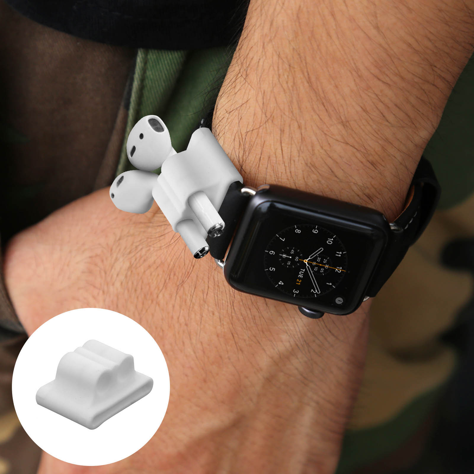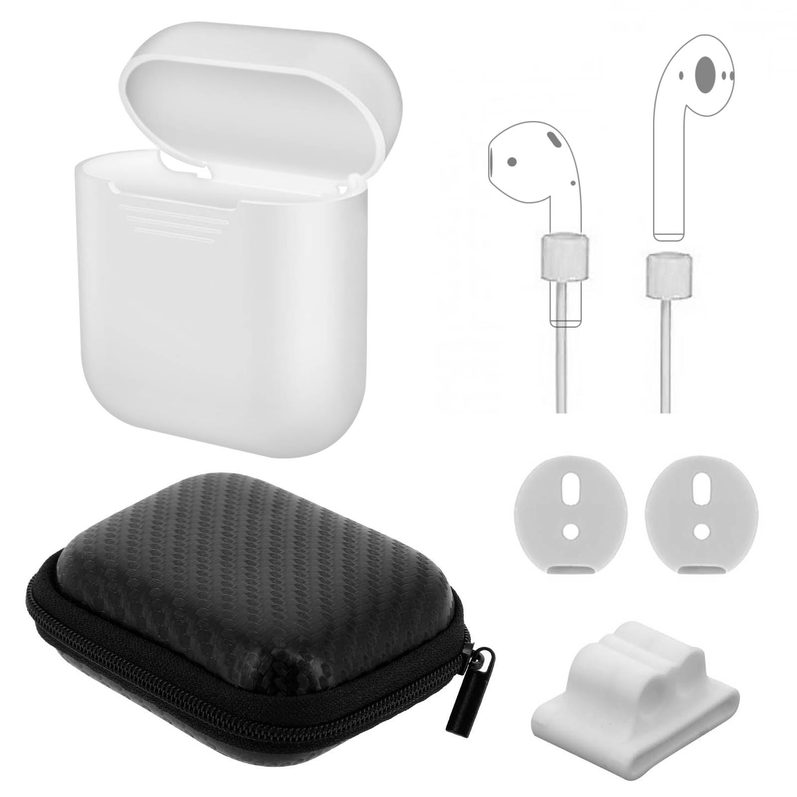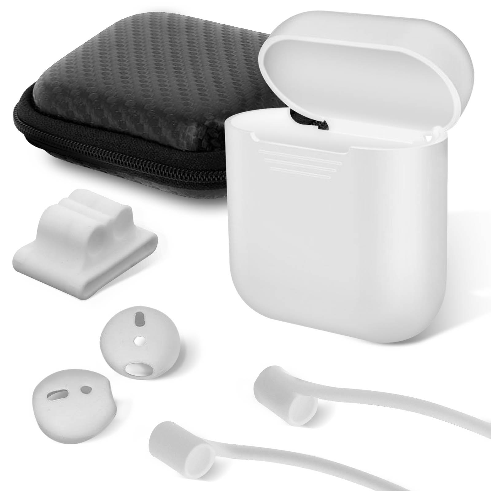 Kit Accessoires AirPods 5en1 Housse Étui Cordon Embout Support Apple Watch Blanc