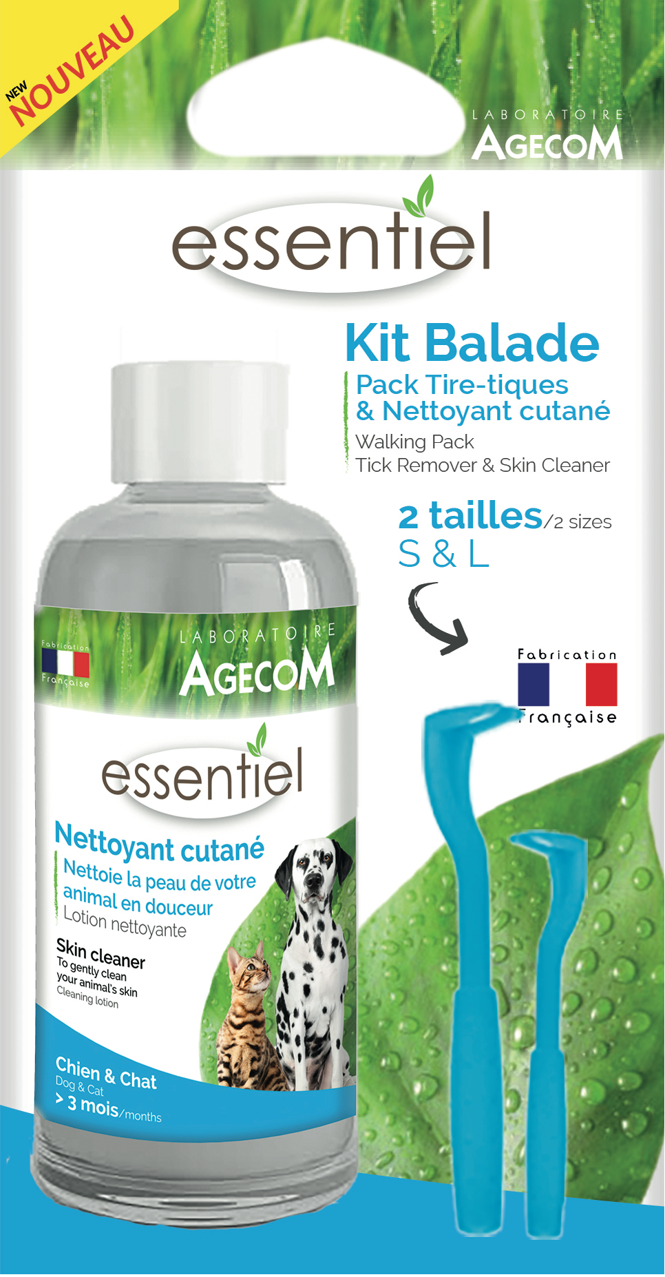 Les crochets Essentiel sont incassables, résistants et indéfiniment réutilisables. Les deux tailles de crochets permettent de retirer toutes tailles de tique rencontrées dans la nature. Les crochets ont été testés et approuvés par les vétérinaires. Le nettoyant cutané Essentiel est une solution permettant de nettoyer en douceur la peau de l’animal lorsque celle-ci est irritée.