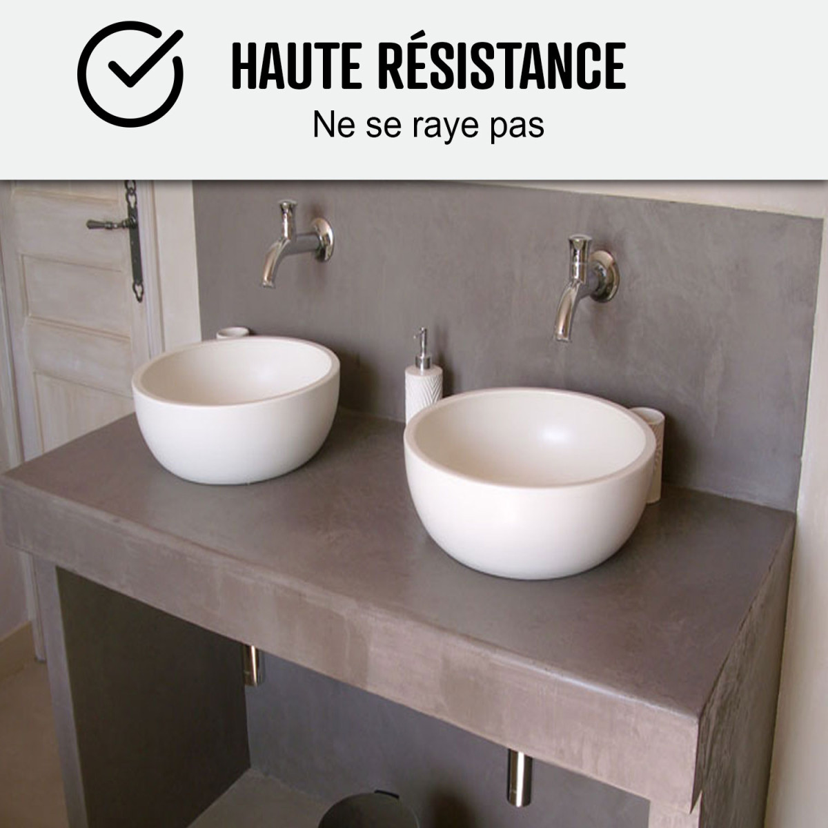 Le Kit béton ciré salle de bains permet de réaliser une décoration esthétique, résistante et durable. S'applique sur les parois et sols des douches italiennes. En rénovation, il permet de relooker votre salle de bain au meilleur prix et est parfaitement étanche.
