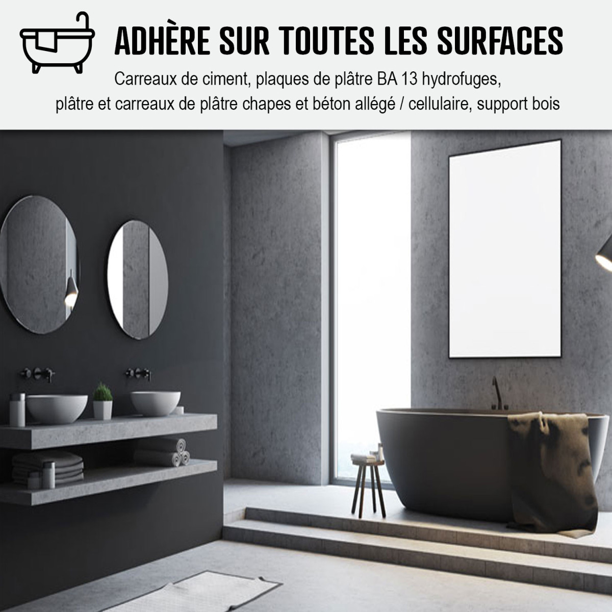 - Application en intérieur et extérieur sur tous les matériaux