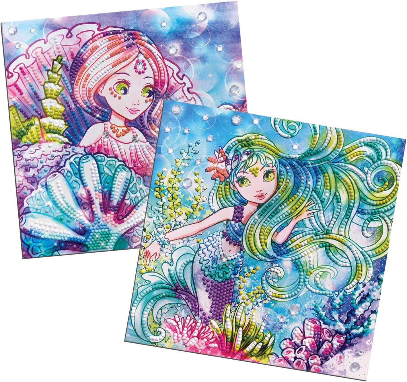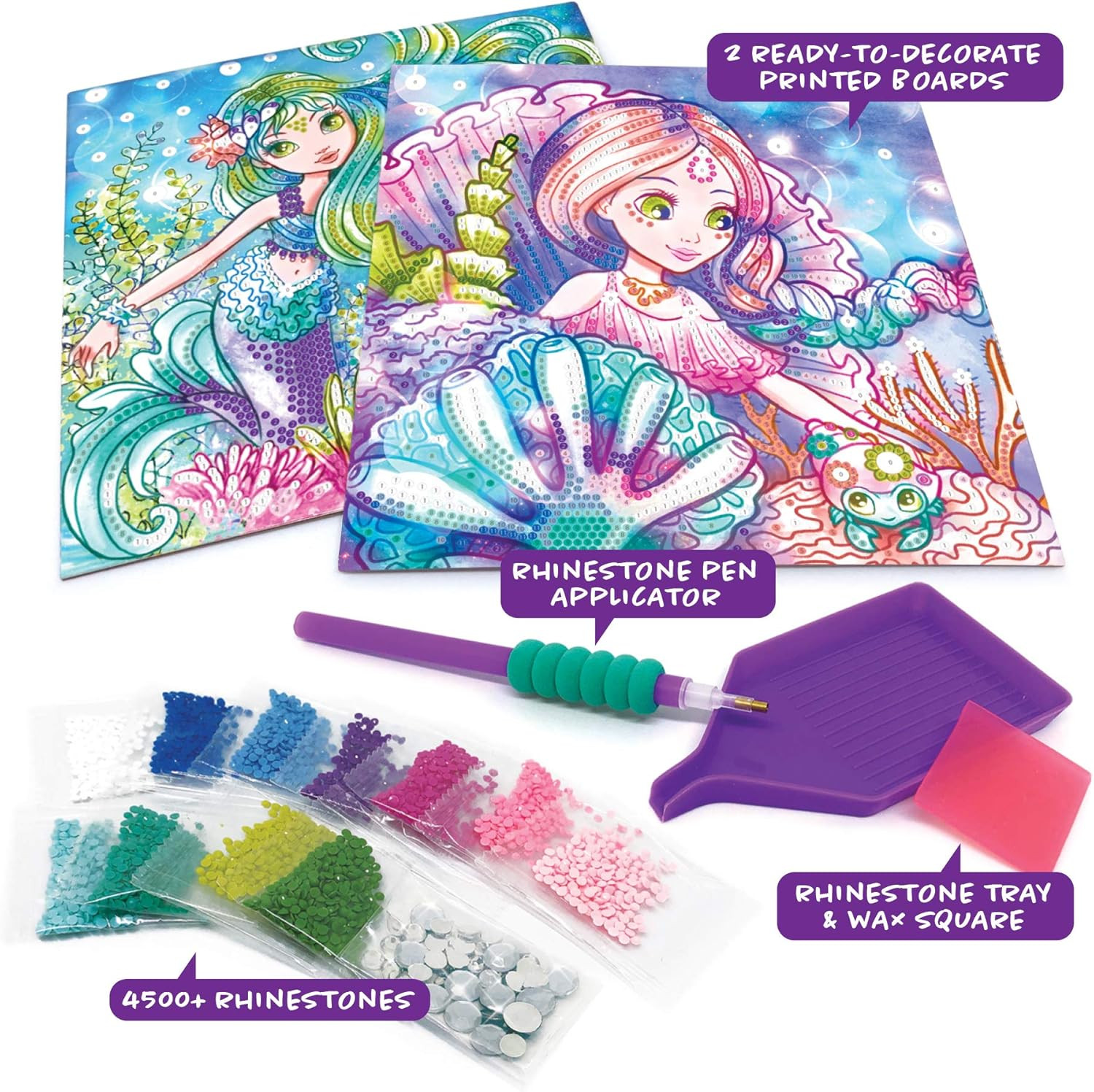 Réalisez deux créations spectaculaires : utilisez l'applicateur pour fixer les strass sur les motifs adhésifs en suivant les numéros de couleur, et admirez le résultat !