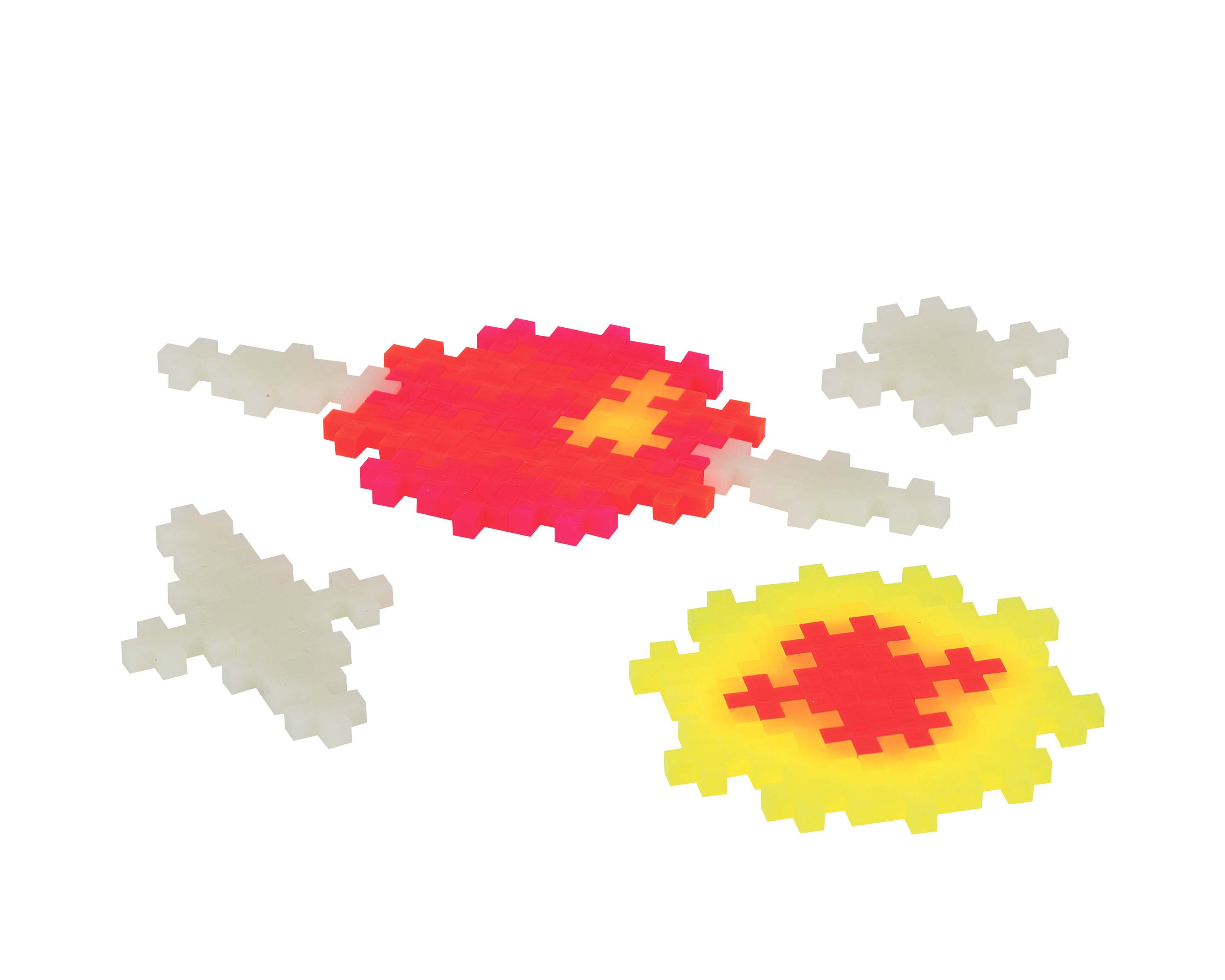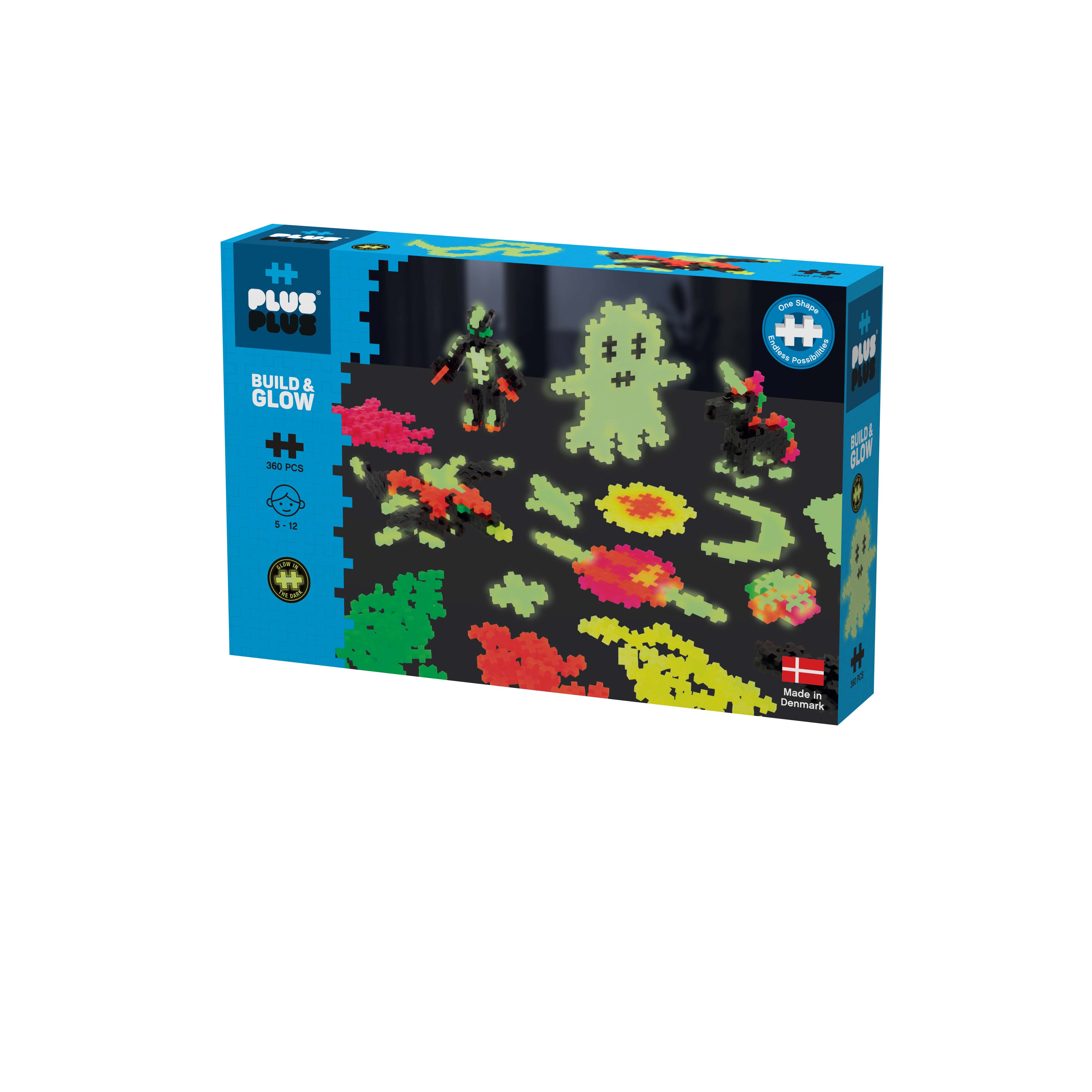À vous les constructions Plus-Plus phosphorescentes avec ce kit de 360 pièces. Fantôme, satellite, licorne magique, étoile, lunette, vaisseau spatial, planète, lune, robot et même toupie… Fabriquez d'incroyables objets qui brillent dans le noir !Ce set contient 360 pièces de Plus-Plus CLASSIC (20 mm) couleur basic, néon et phosphorescent et un guide de construction.