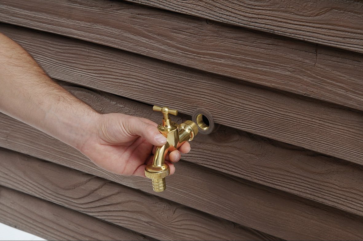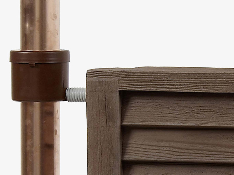 995146 - kit cuve woody 350 l bois foncé - Le Kit cuve mural WOODY 350 L bois foncé de GRAF 995146 est une parfaite imitation d?un mur en bois de chêne. De style rustique et inspiré du cadre champêtre, le réservoir trouvera sa place dans votre jardin. Réservoir mural Woody avec attache murale et joint DN 19/32 (non monté). Collecteur de gouttière filtrant Eco (coloris : gris) avec tuyau et embout de raccordement. Préserve l?eau de pluie des salissures du toit. Fonction trop-plein automatique. Position été/hiver. S?adapte aux gouttière, diamètre 80 ou 100 mm. Sortie latérale 1 ? (25 mm). Surface de toiture maximale de 50 m². Robinet PE imitation laiton 3/4 ? (19 mm). Réservoir d?eau de pluie décoratif. Imitation bois rustique. Finition haut de gamme. Coloris : Bois foncé. Toujours utiliser un collecteur pour raccorder la descente de gouttière au réservoir. A vider totalement et obligatoirement en période de gel.- Cuve garantie 5 ans