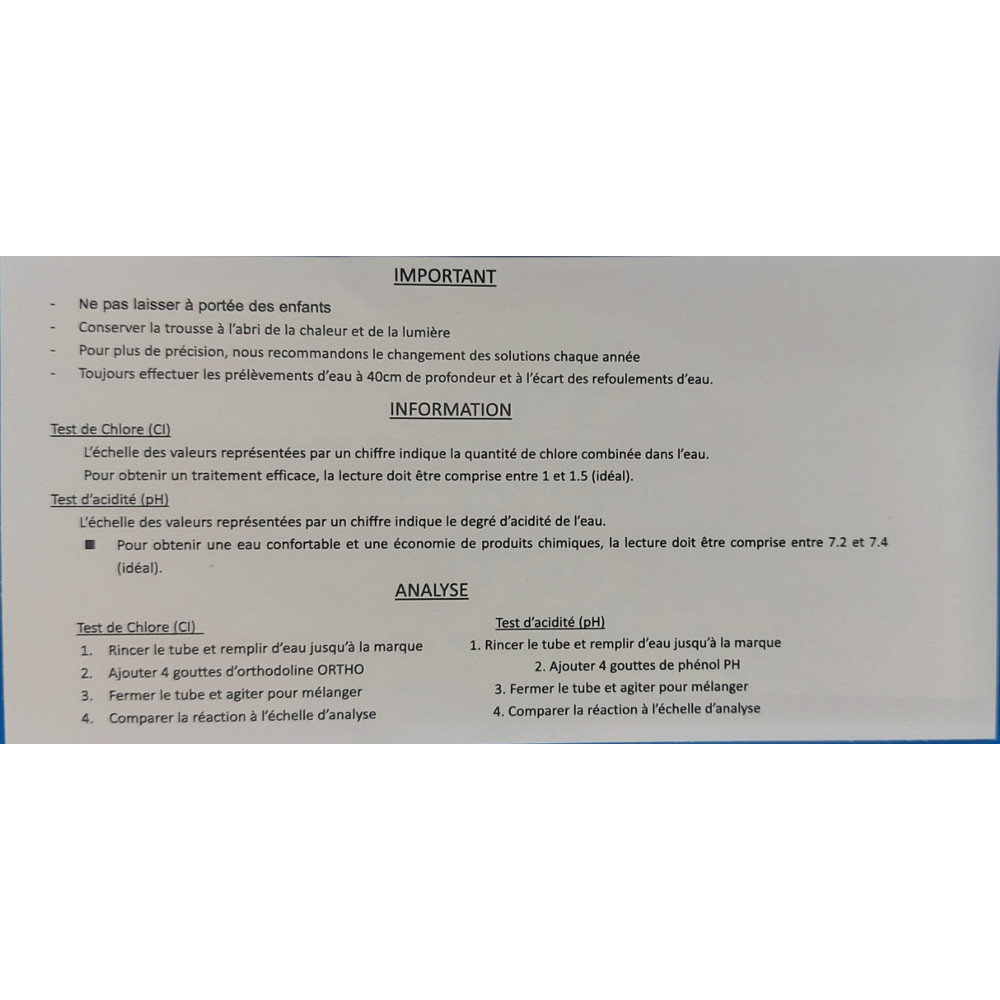 | Libellé | Kit d'analyse de l'eau de votre piscine - Teste d'eau piscine |