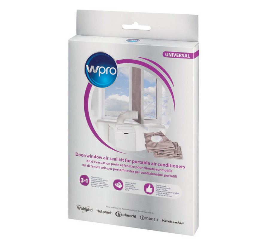 ask007 - kit d?évacuation universel porte et fenêtre pour climatiseur mobile - Kit d?évacuation universel 3 en 1 fenêtre ou porte WPRO ASK007 pour climatiseur mobile.Augmente l?efficacité du climatiseur en empêchant les échanges d?air entre l?extérieur et l?intérieur. S?adapte aux portes, fenêtres et portes-fenêtres en aluminium, bois ou PVC. Le kit contient 4 pièces, un rouleau de velvro adhésif (3m) et une notice d?installation. L'ASK007 s'adapte aux portes, fenêtres et baies vitrées, empêche les échanges d'air.