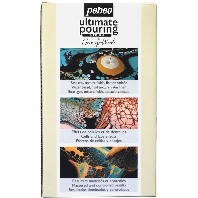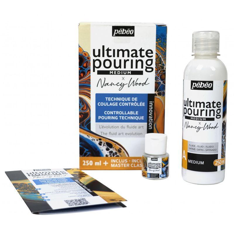 Kit d'initiation aux techniques de pouring. Ce kit de peinture à base d'eau est idéal pour réaliser des effets de cellules et dentelle en pouring. Sa texture fluide et sa finition satinée vous permet d'obtenir de jolis résultats sans trop de difficulté. A l'intérieur, vous y trouverez une vidéo masterclass pour vous introduire à la technique de pouring ! Obtenez des résultats maîtrisés en utilisant la technique du coulage ! Un rendu professionnel garanti, initié ou non. Ce kit contient un médium de 250 ml, un catalyseur de 15 ml et une vidéo masterclass.