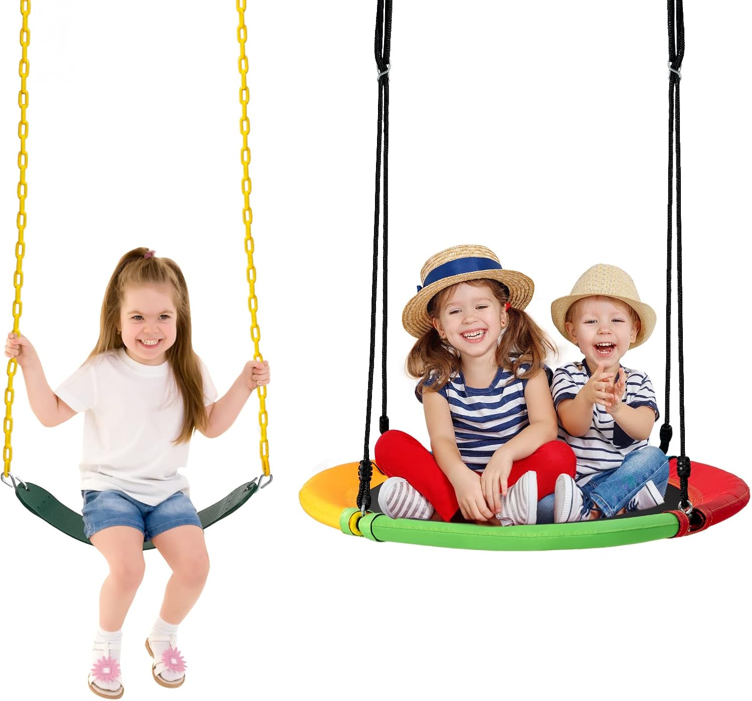 - Amusement et bénéfices pour la santé sans fin : cet ensemble de balançoires est livré avec une balançoire souple et une balançoire nid d’oiseau, offrant deux façons de jouer. Et les deux balançoires sont également efficaces pour amener les enfants à se divertir de manière plus saine, en évitant un temps d'écran prolongé, la pression due à trop de devoirs à la maison, un manque d'interaction et une position assise ou couchée prolongée.