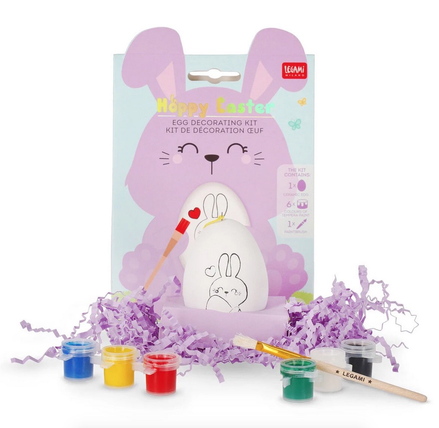 Pour exprimer votre créativité, il y a quelque chose de n..uf ! Il s'agit du Kit de Décoration uf de Pâques de Legami : 6 tubes de gouache de différentes couleurs, un pinceau et un uf en céramique à peindre. Il ne vous reste plus qu'à ajouter toute votre fantaisie pour dessiner en mêlant couleur et originalité. La parfaite idée cadeau pour ceux qui voient le monde en couleurs !